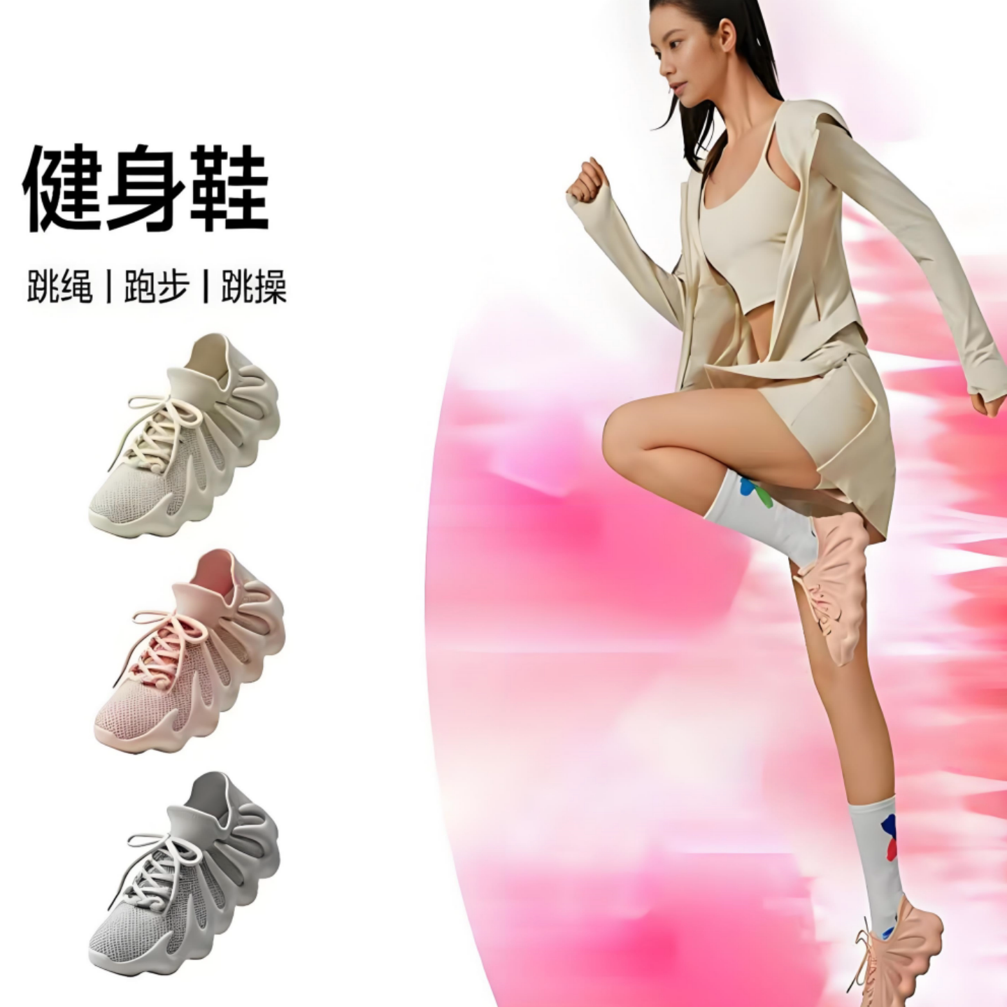 综合透气轻便运动鞋女室内健身鞋静音减震跳绳跑步跳操防滑专用鞋