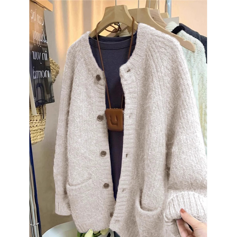高级感慵懒咖色毛衣外套女秋冬季宽松美拉德加厚开衫软糯针织上衣