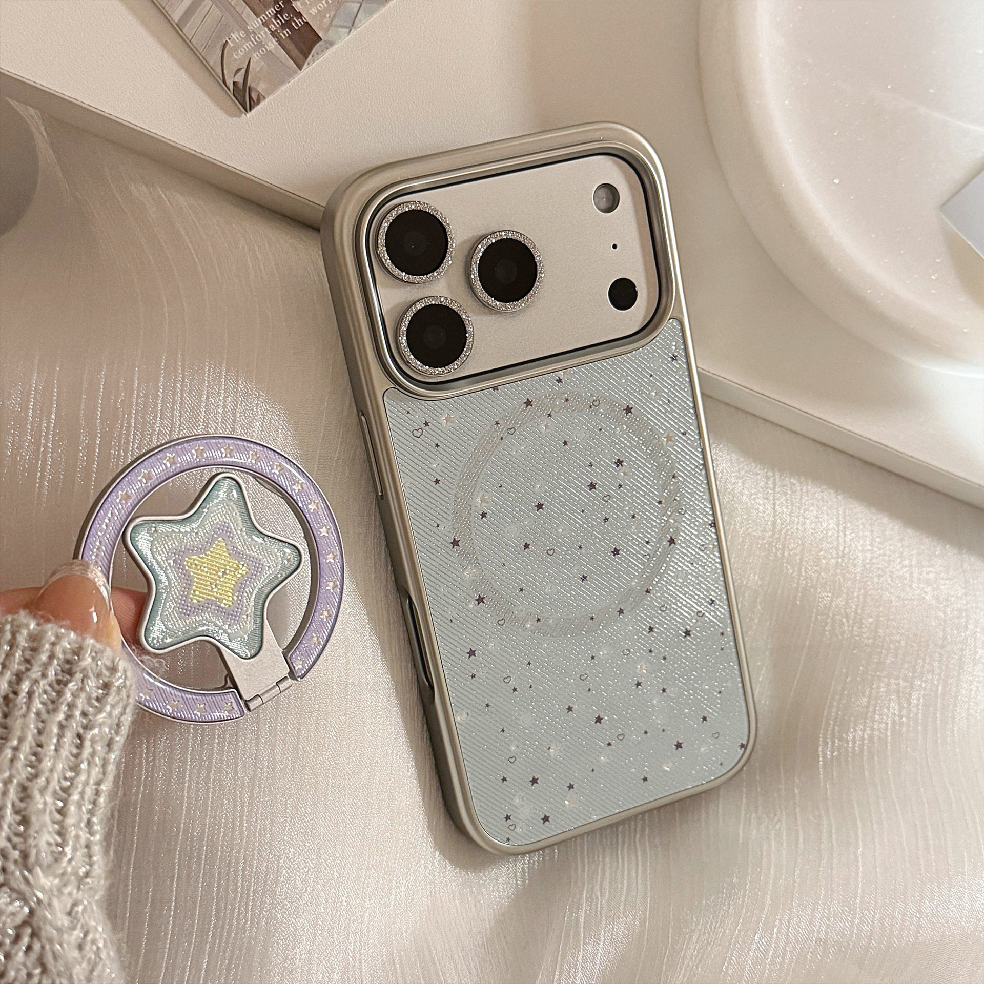鎏金繁星磁吸圈【可拆卸支架】适用苹果17女款手机壳带支架16promax新款15pro高级感2026可爱iphone13女生14