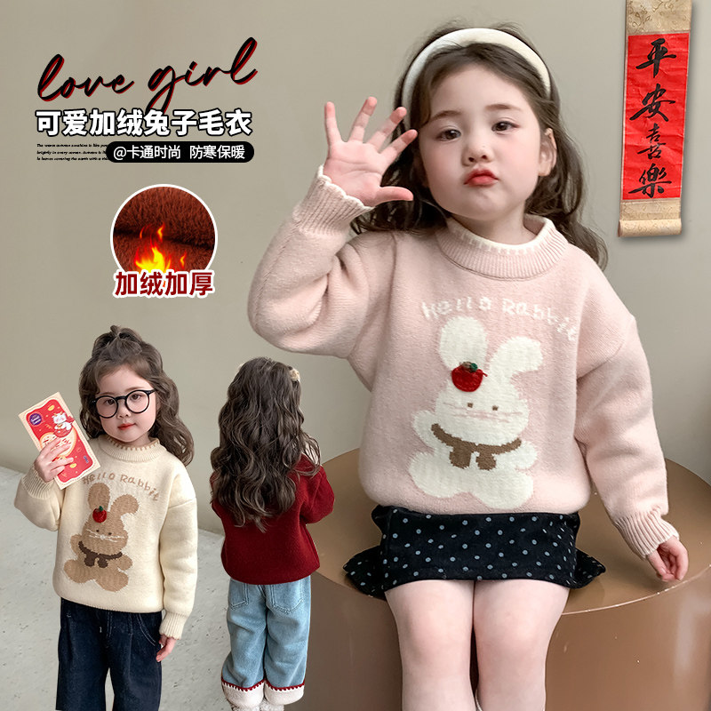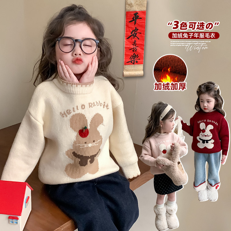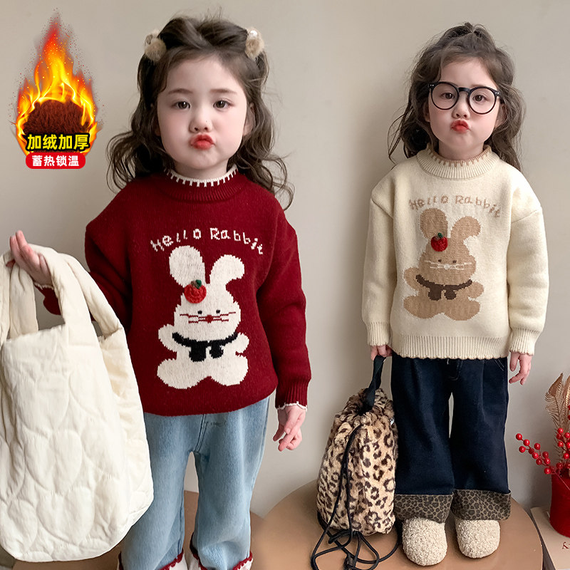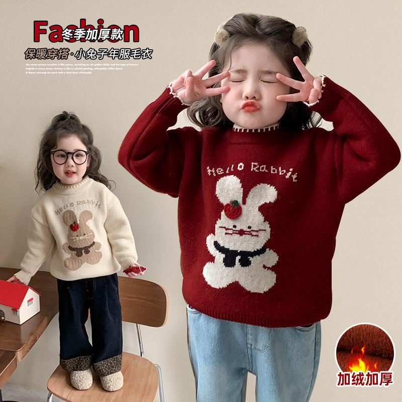 女童毛衣2025冬装新款女宝加厚宝宝红色女款毛线衣儿童上衣内搭