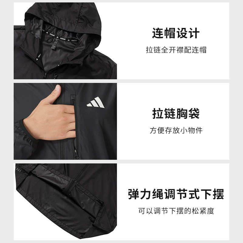 阿迪达斯防风衣男外套春季新款连帽运动服跑步开衫薄款夹克IN1483