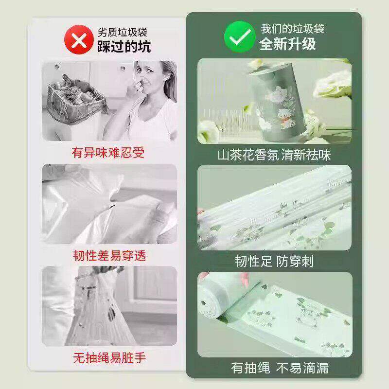 艾草驱蚊印花垃圾袋加厚家用手提式免撕拉绳防蚊香氛特厚厚款收口