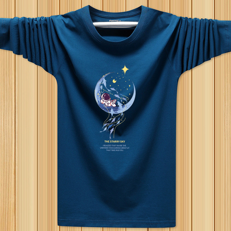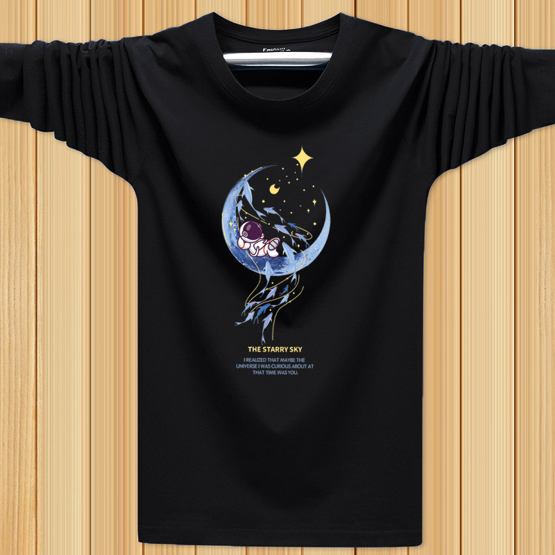 春秋季青少年潮男装纯棉运动休闲长袖t恤薄款圆领宽松上衣打底衫