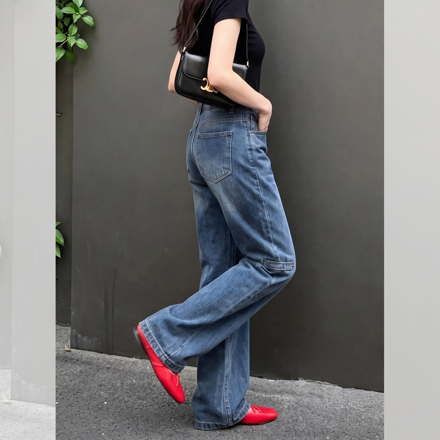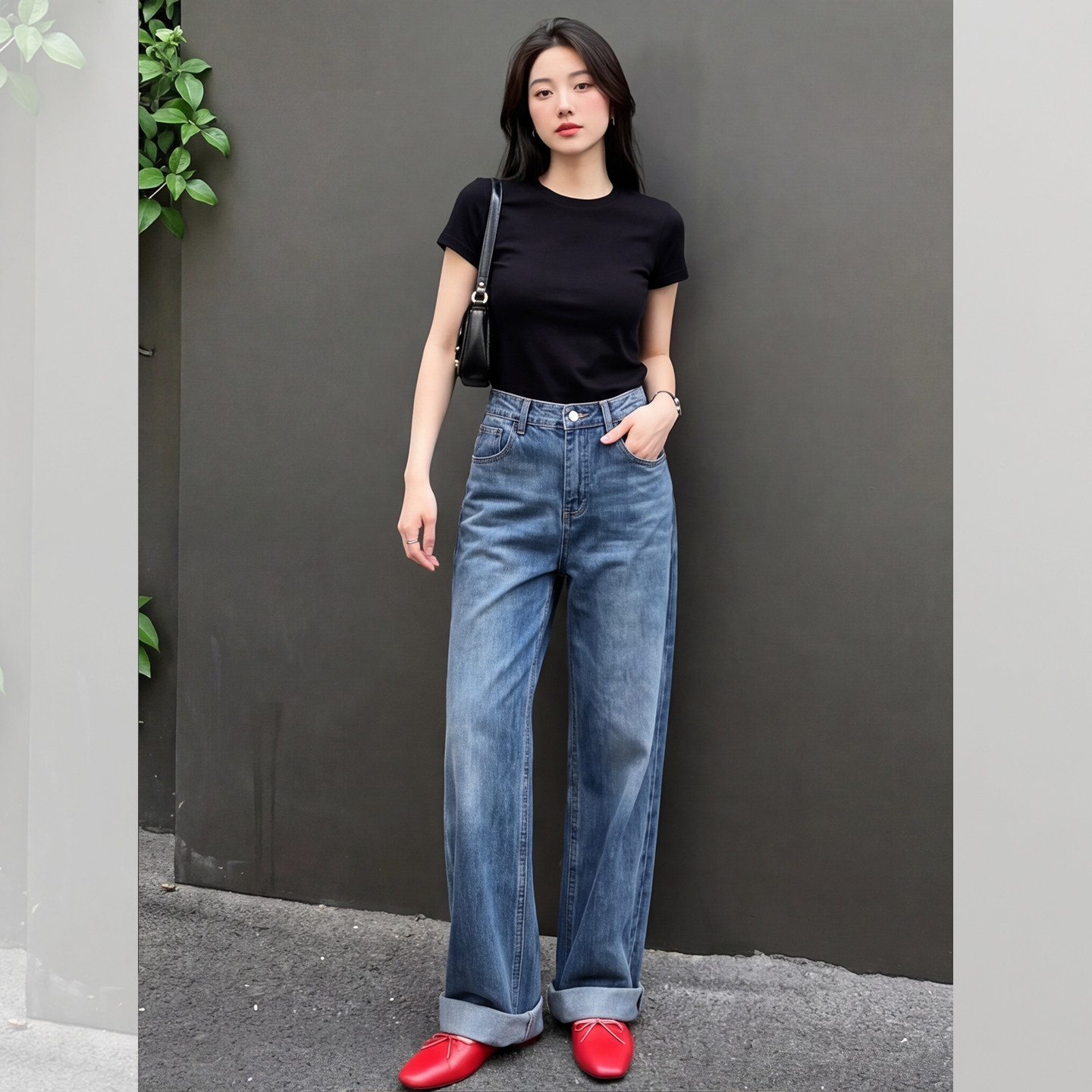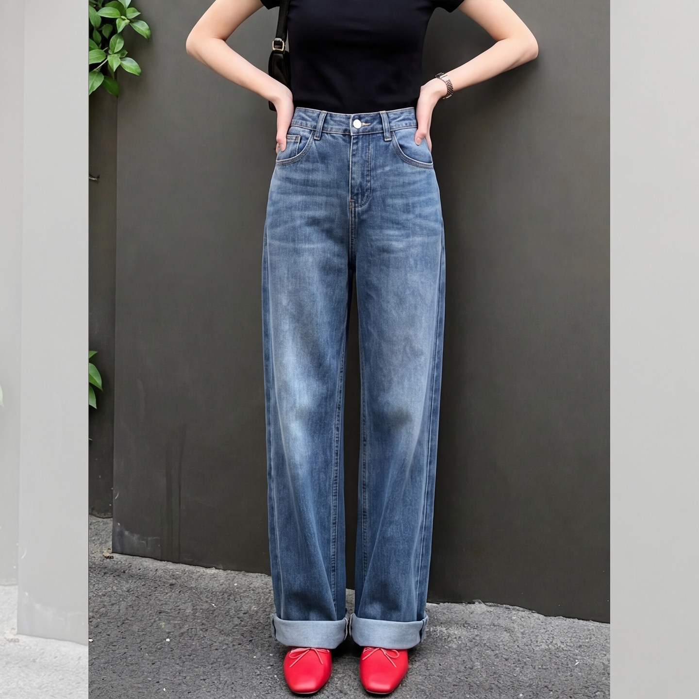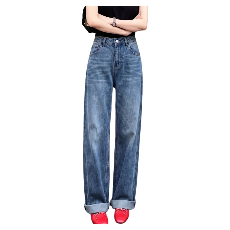奢华2026夏季新款韩版小个子宽松显瘦穿搭慵懒感蓝色阔腿牛仔裤女