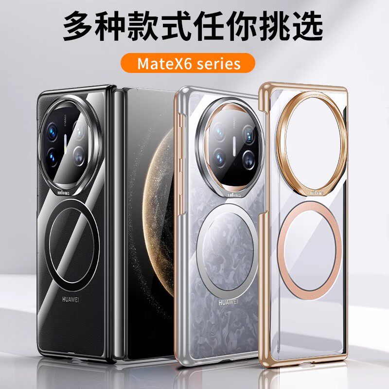 适用华为matex6手机壳新款磁吸原装透明壳镜头隐形支架金属电镀半包防摔保护壳高级超薄创意后壳X6折叠屏外壳