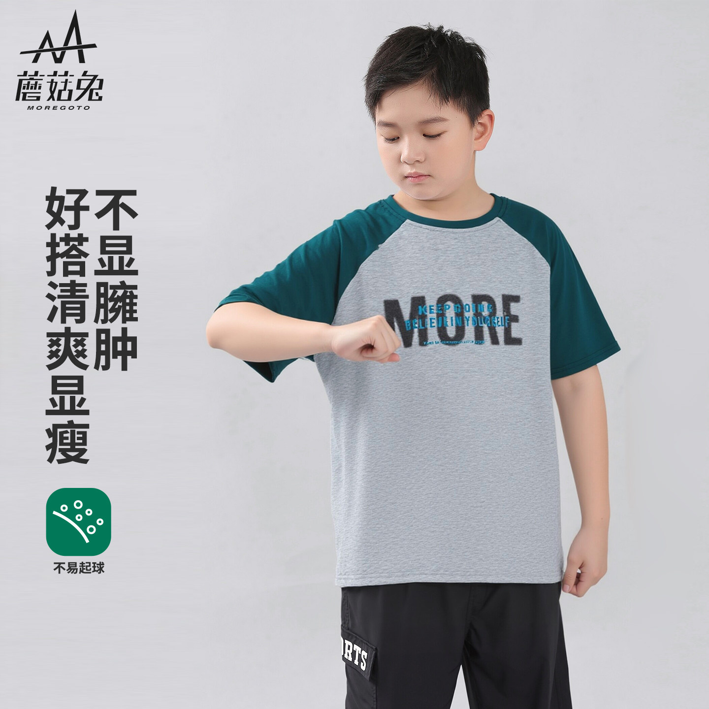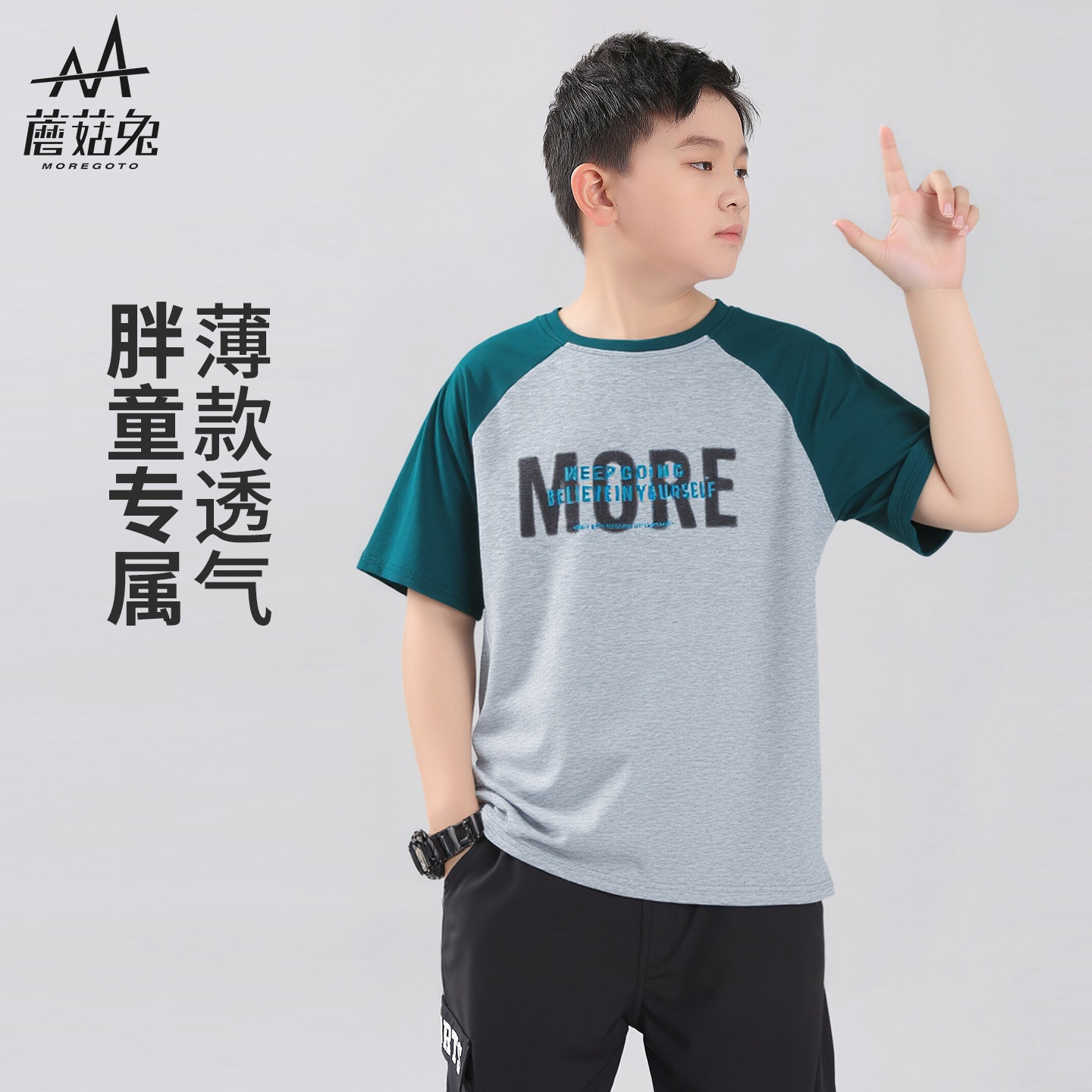 胖男童冰瓷棉短袖夏季薄款休闲半袖T恤青少年男孩加肥宽松体恤衫