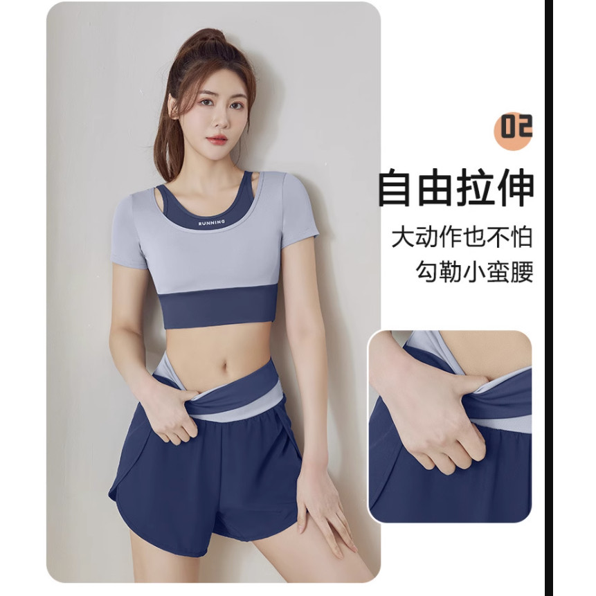瑜伽服套装女夏季新款专业普拉提短袖上衣速干显瘦晨跑运动健身服
