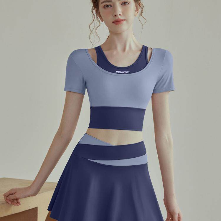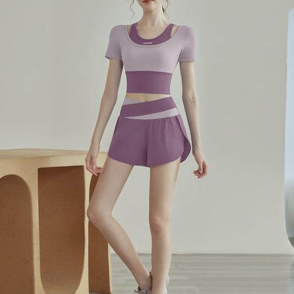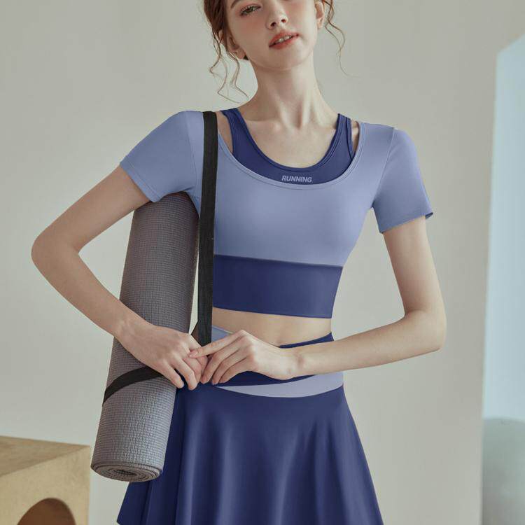 春夏新款健身服套装普拉提跑步运动上衣修身显瘦速干短袖瑜伽服女