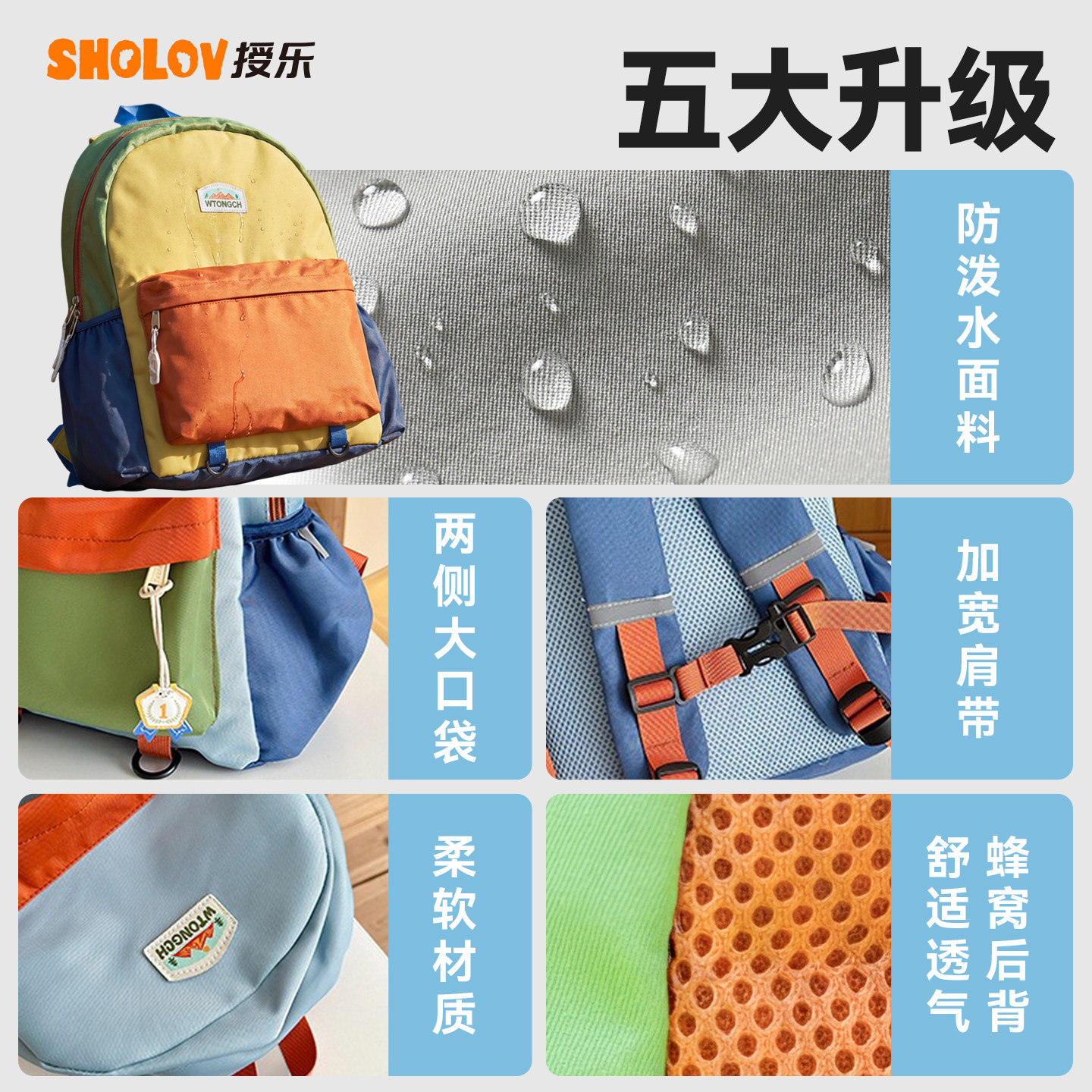撞色拼接双肩包儿童轻便大容量小学生书包户外背包男女孩网红包包