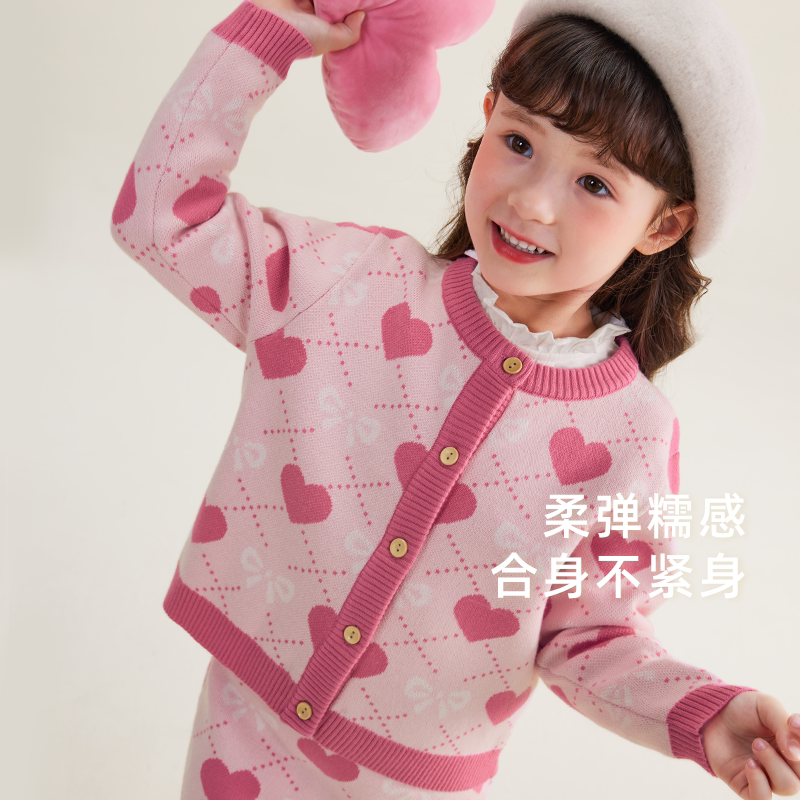 [32支高纱]女童春秋针织套装红色裙子大童冬季时髦洋气小香风童装