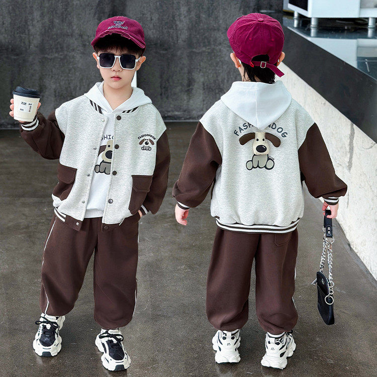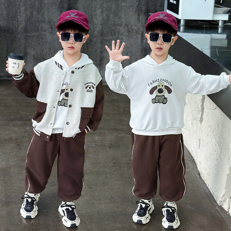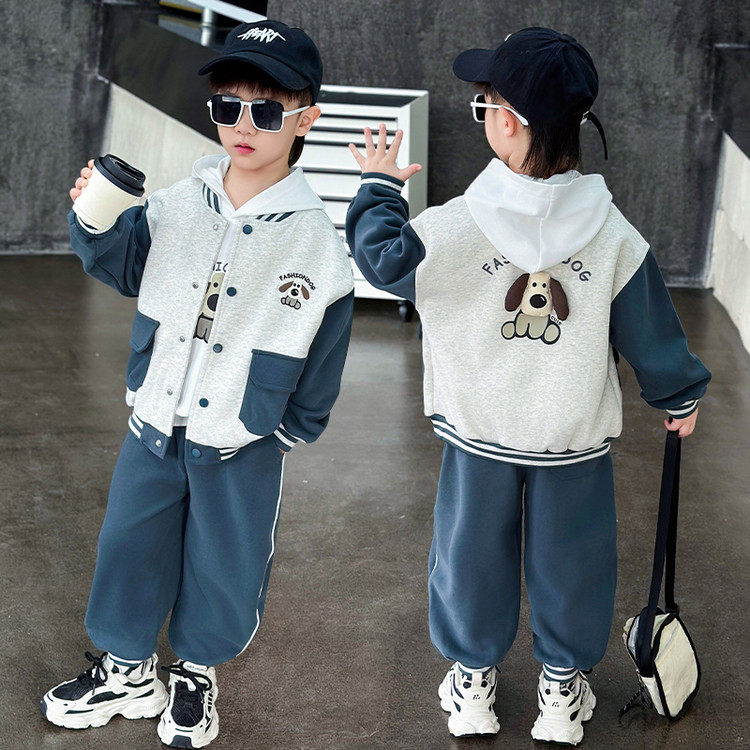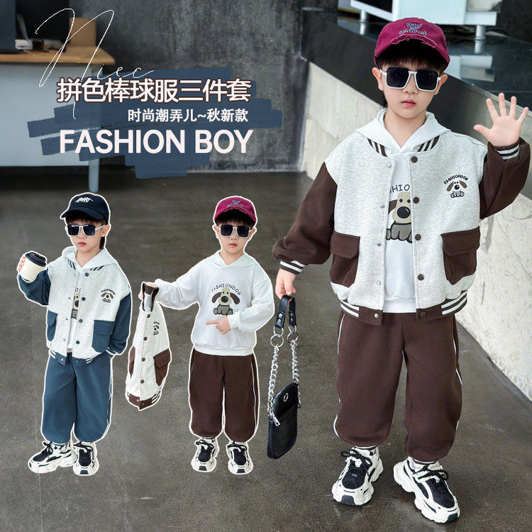 男童春秋装棒球服外套+连帽T恤+裤子2026新款童装5男孩宝宝三件套