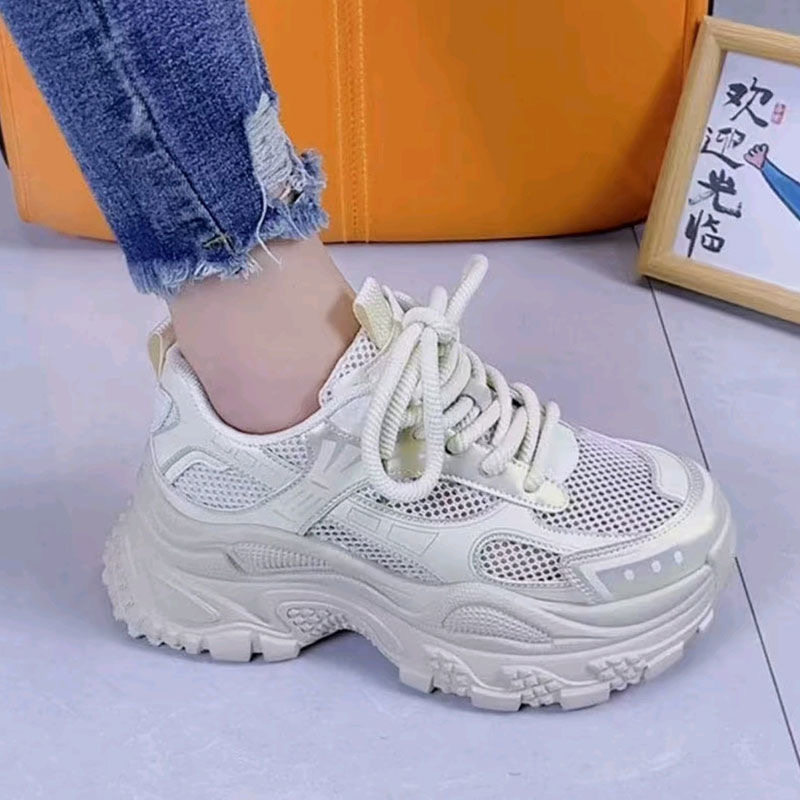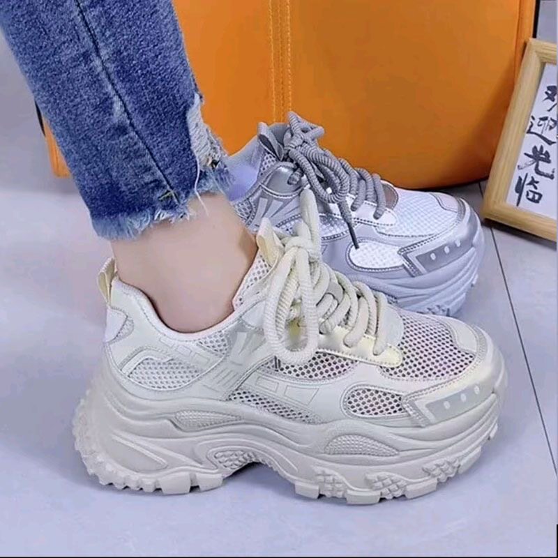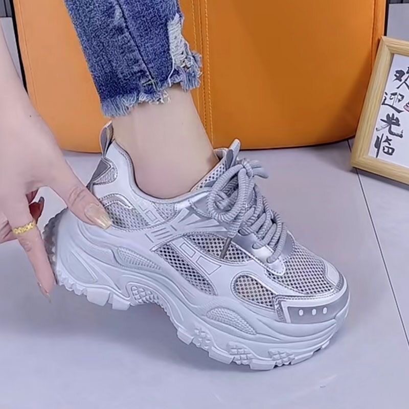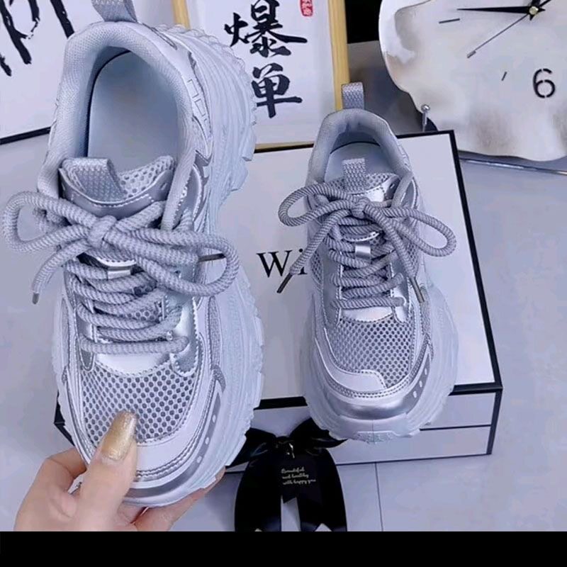 银色厚底增高老爹鞋女2026夏季新款炸街百搭网面透气轻便休闲潮鞋
