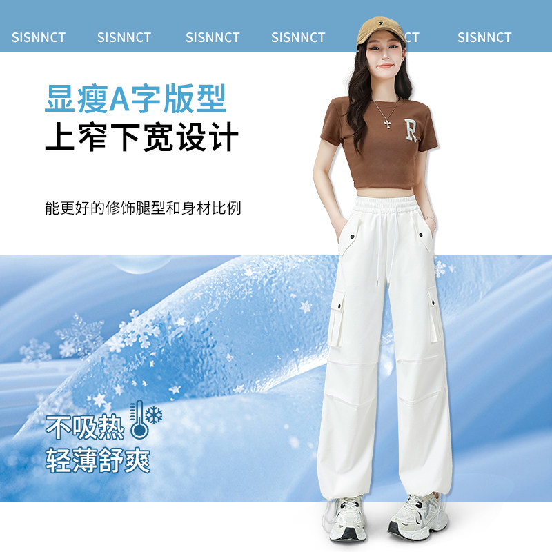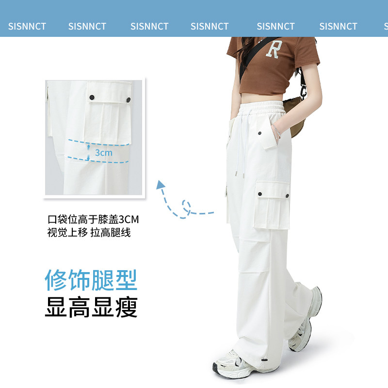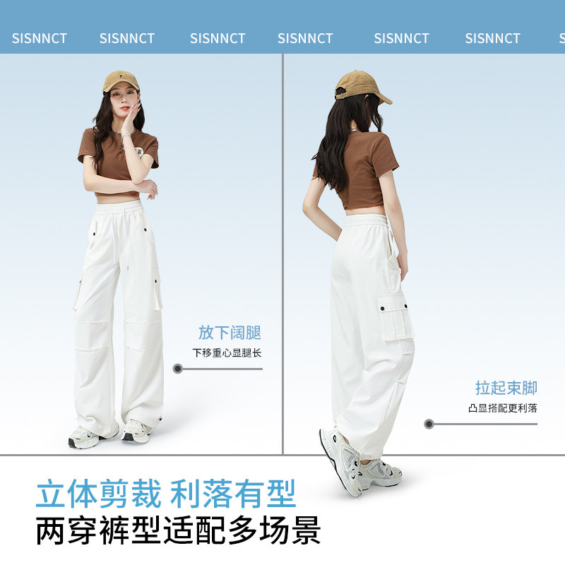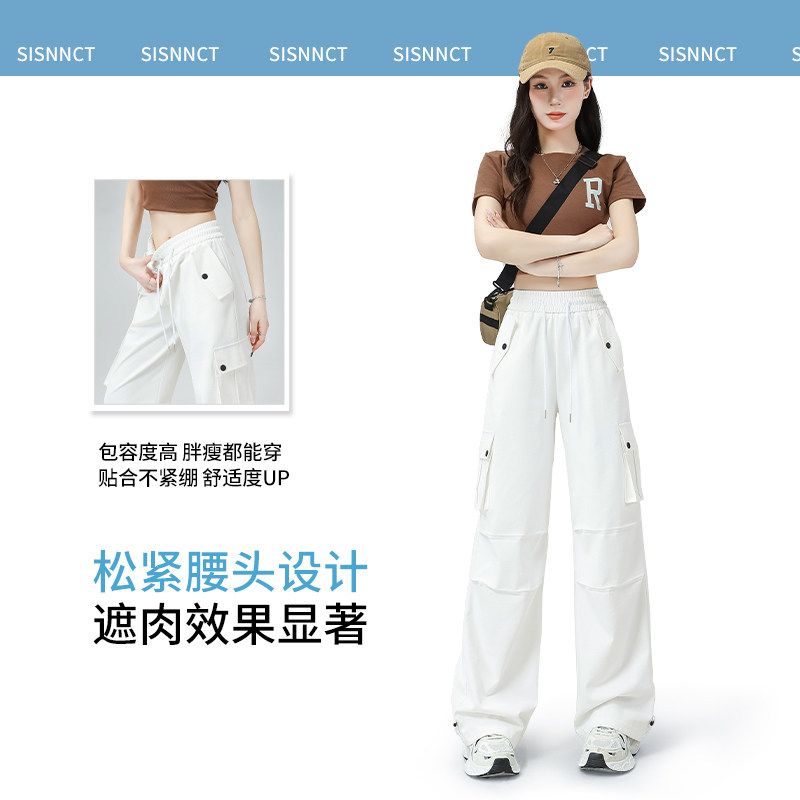 工装裤女款2026新款夏美式高腰宽松显瘦白色阔腿休闲速干运动裤子