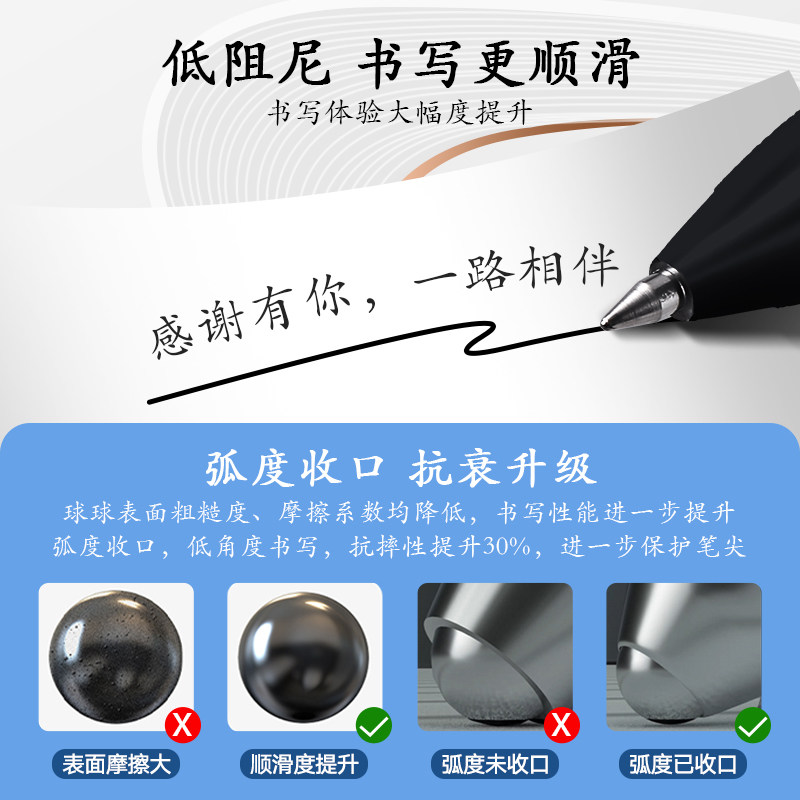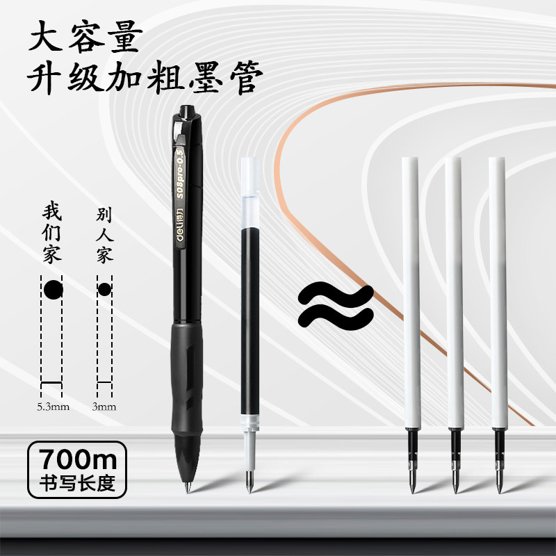 311线报网描述:得力臻顺滑s08pro按动中性笔子弹头黑色