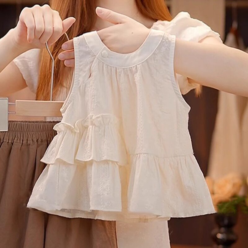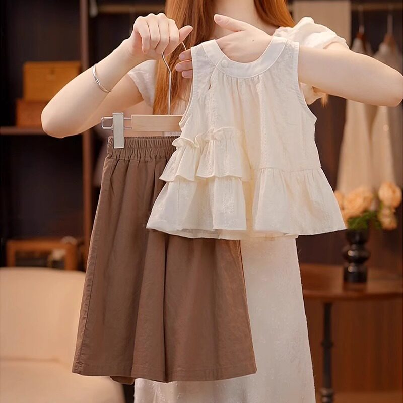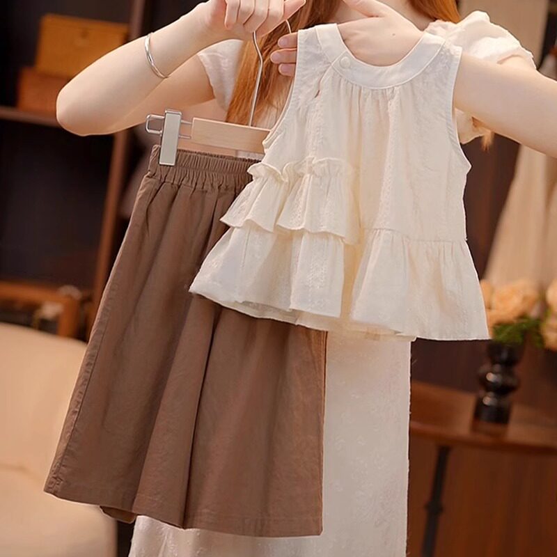 女童夏季套装2025新款儿童时髦夏装女孩纯色背心阔腿裤两件套洋气