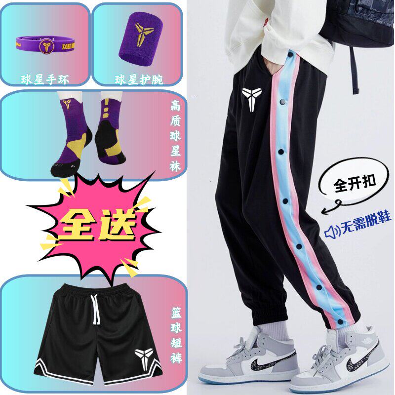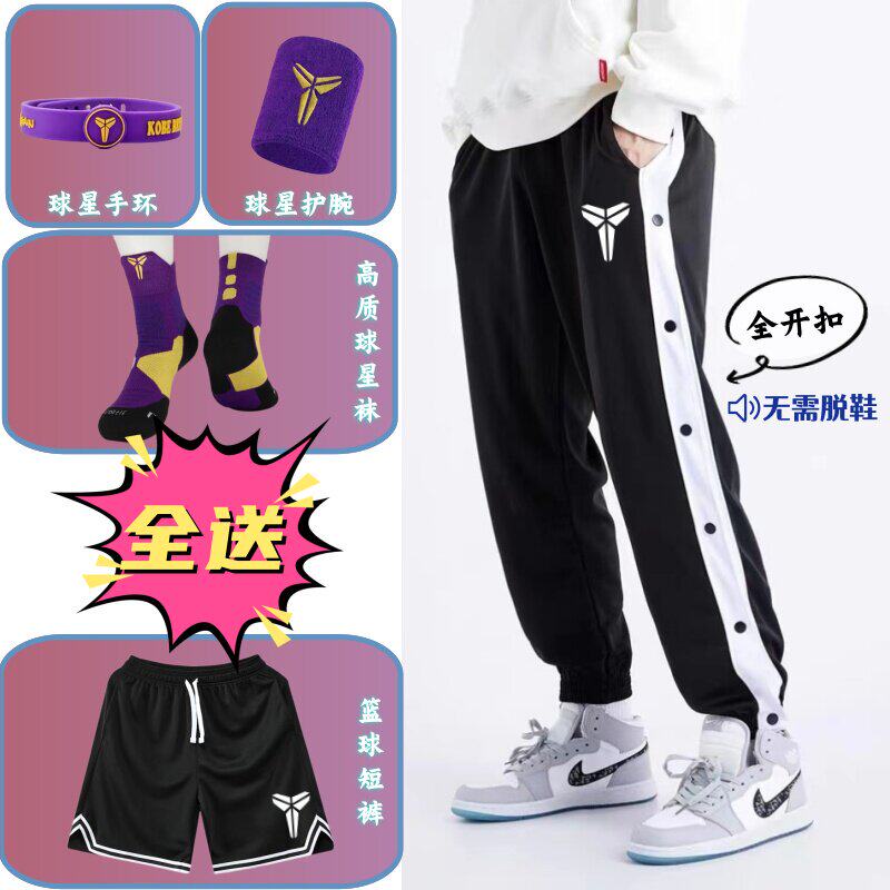 春夏美式儿童篮球排扣裤男生全开扣秒脱科比学生训练运动休闲长裤