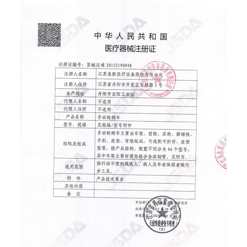 鱼跃轮椅车H007轻便可折叠多功能瘫痪残疾人手推代步车老人轮椅