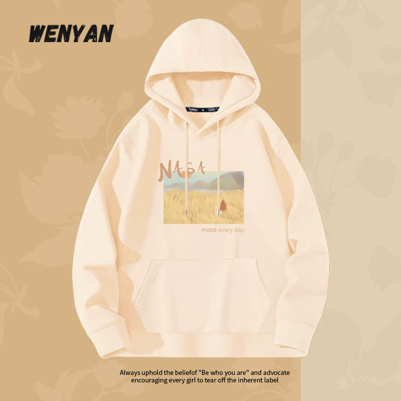 米色卫衣女款2026新款爆款春秋连帽加绒外套小众设计感秋装情侣装