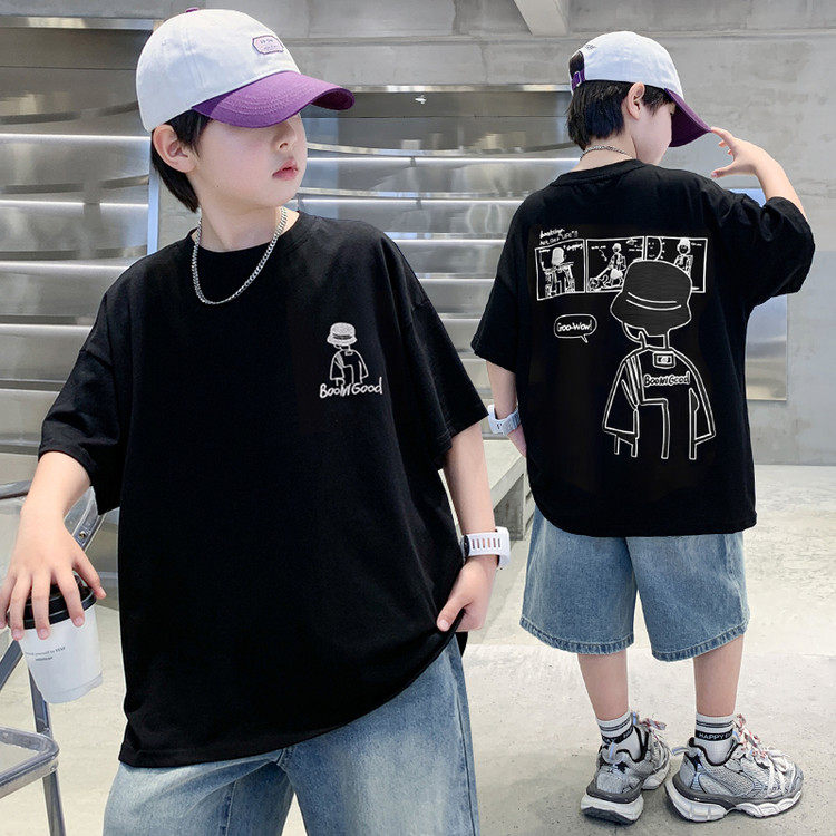 男女童潮牌痞帅风短袖T恤2026夏季新款中大童宽松半袖上衣潮