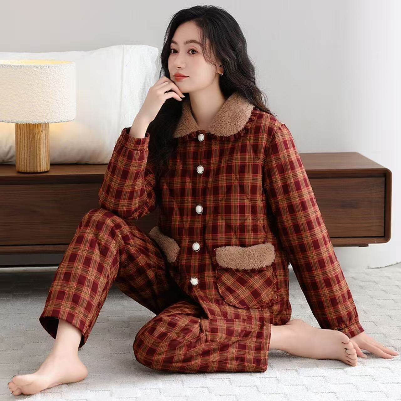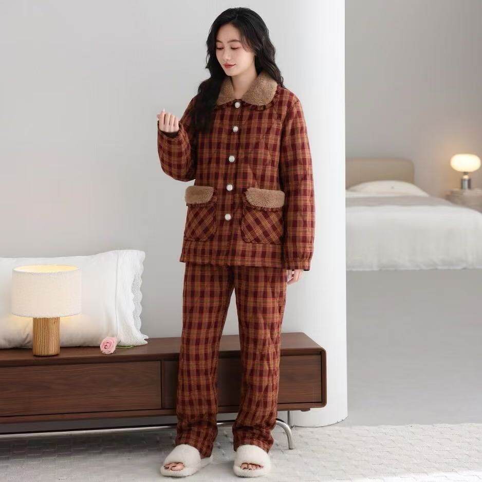 新款睡衣女士秋冬纯棉夹棉加绒加厚保暖冬天大码家居服套装可外穿