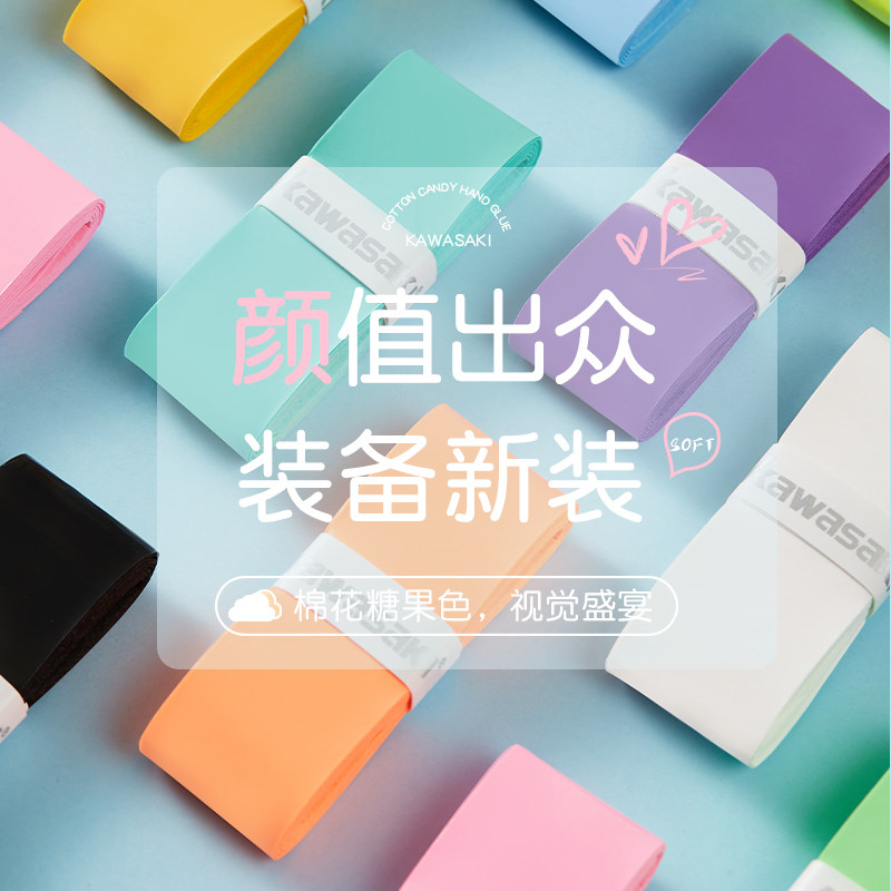 川崎棉花糖手胶羽毛球拍手胶吸汗防滑带薄款粘手把柄缠绕带高颜值