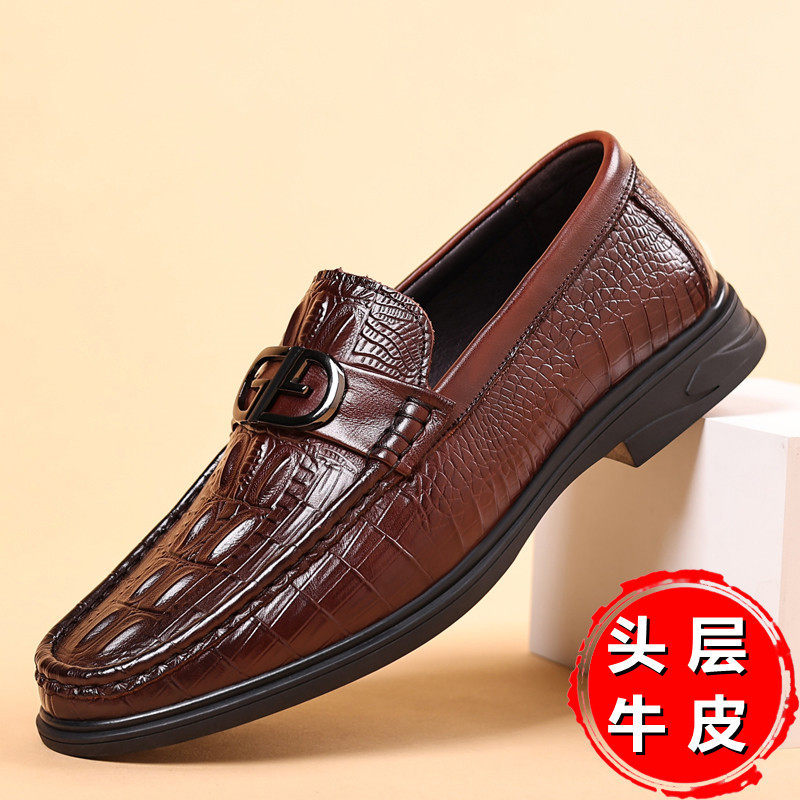 木鸟澄练高豆豆鞋男士软底休闲皮鞋男款懒人一脚蹬头层牛皮男鞋子