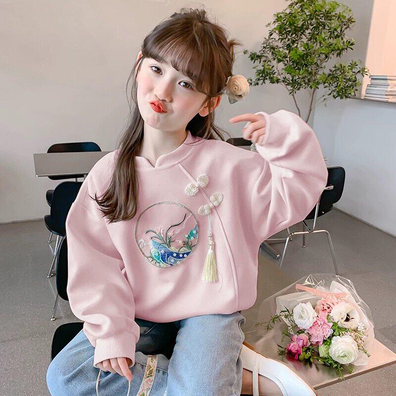 女童薄款卫衣2026春秋款洋气中国风儿童春装新中式童装小女孩上衣