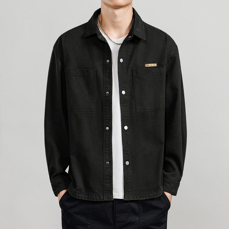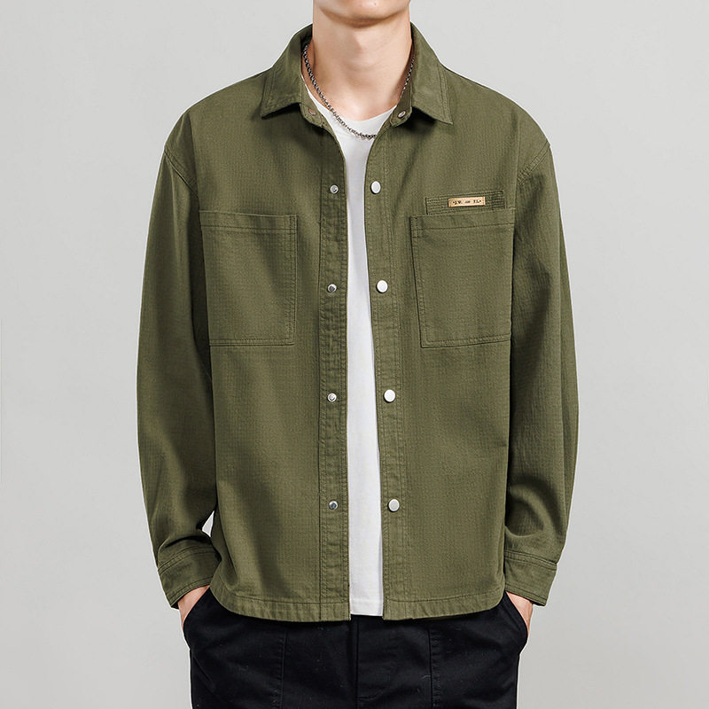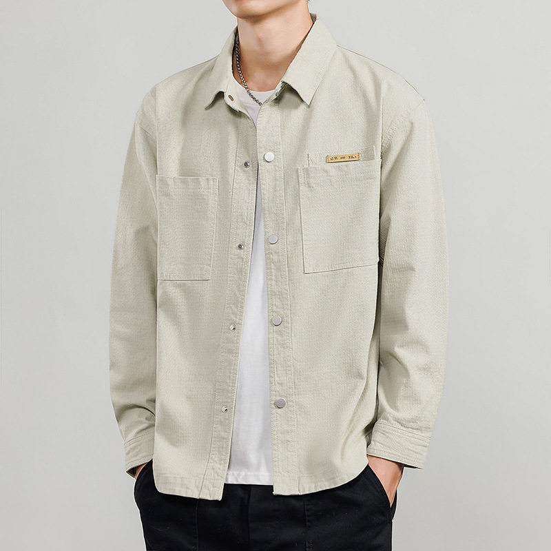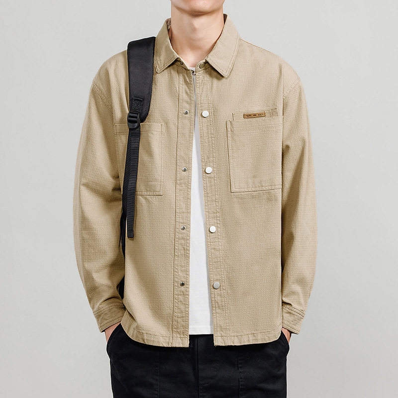 上衣男款春装纯棉衬衫男长袖方领肌理感夹克衣服日系休闲工装外套