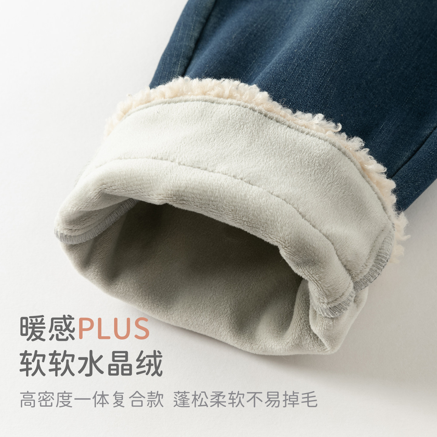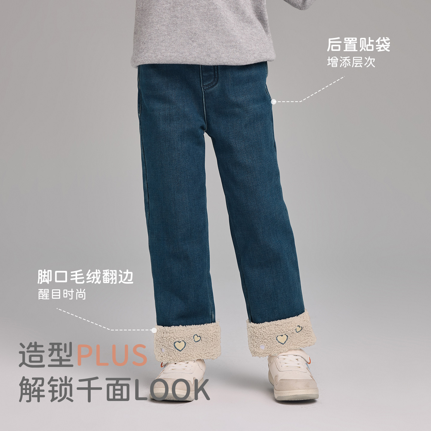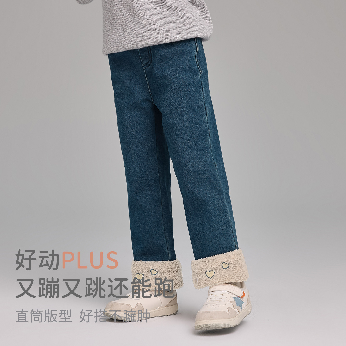 戴维贝拉中大童牛仔长裤2026冬装新款女童加绒裤子休闲保暖直筒裤