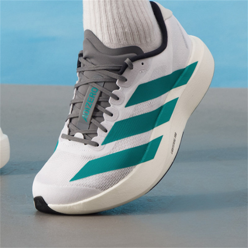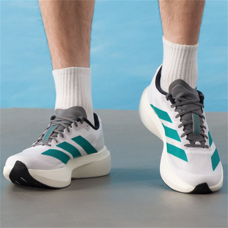 adidas Adizero Evo 时尚舒适拉松长跑短跑跑步鞋男款白绿JS4487