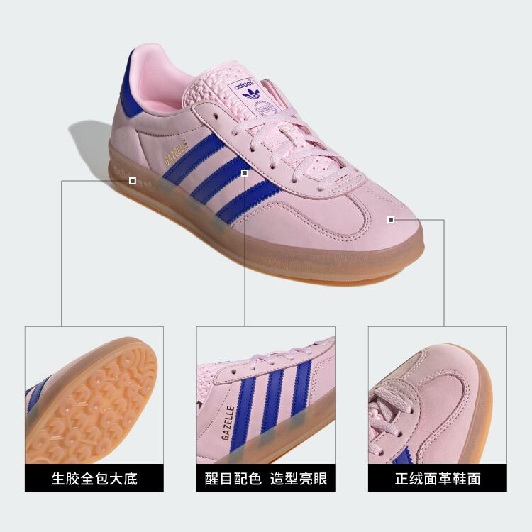 Adidas阿迪达斯Gazelle男女粉蓝色低帮休闲德训鞋T头板鞋 JI1371