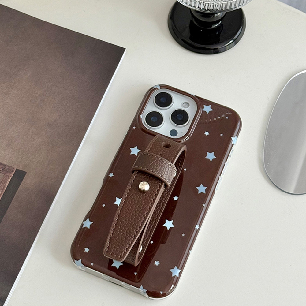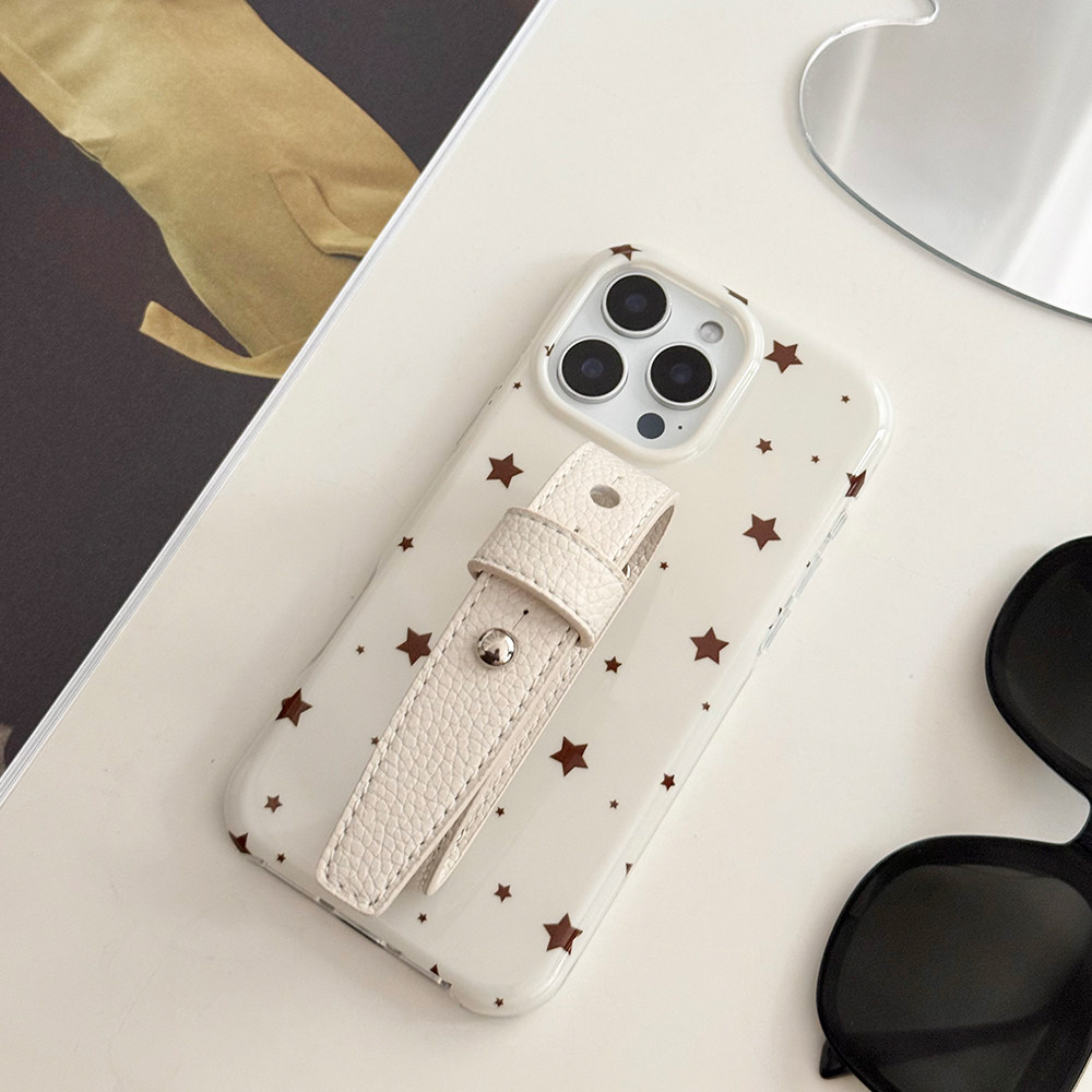 韩风ins星星腕带荔枝纹豆豆钉系列适用苹果17promax手机壳腕带新款iphone15/14系列冬季小众设计保护套