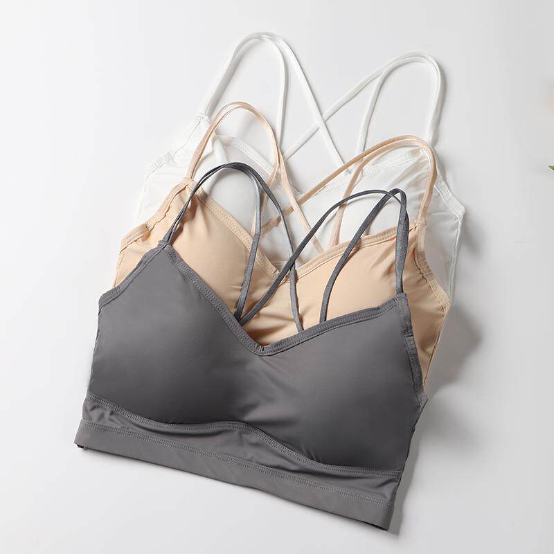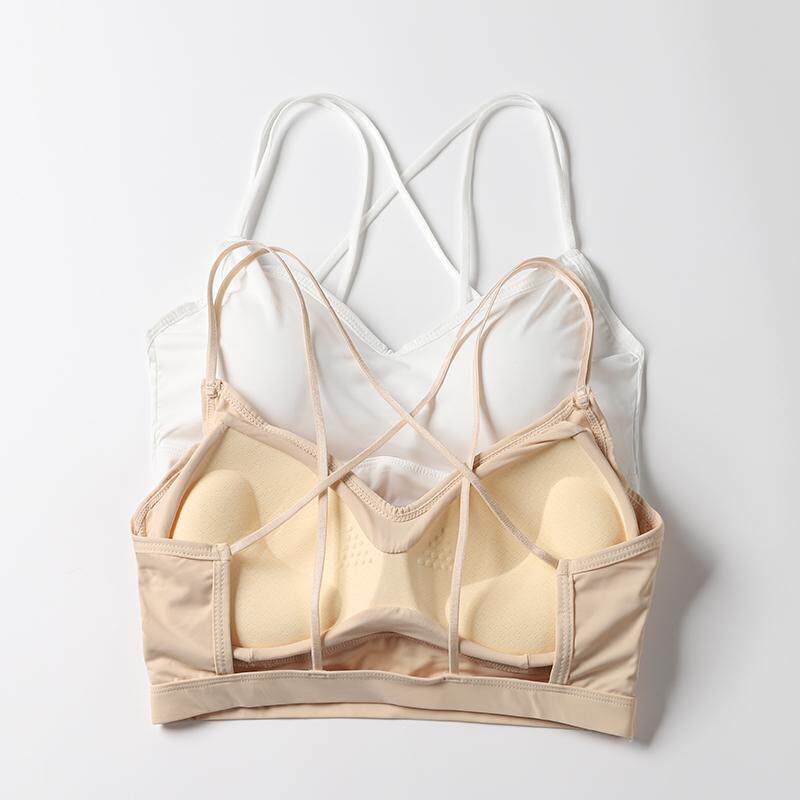 冰丝美背内衣交叉吊带小胸聚拢显大乳胶胸垫加厚背心一体文胸裹夏