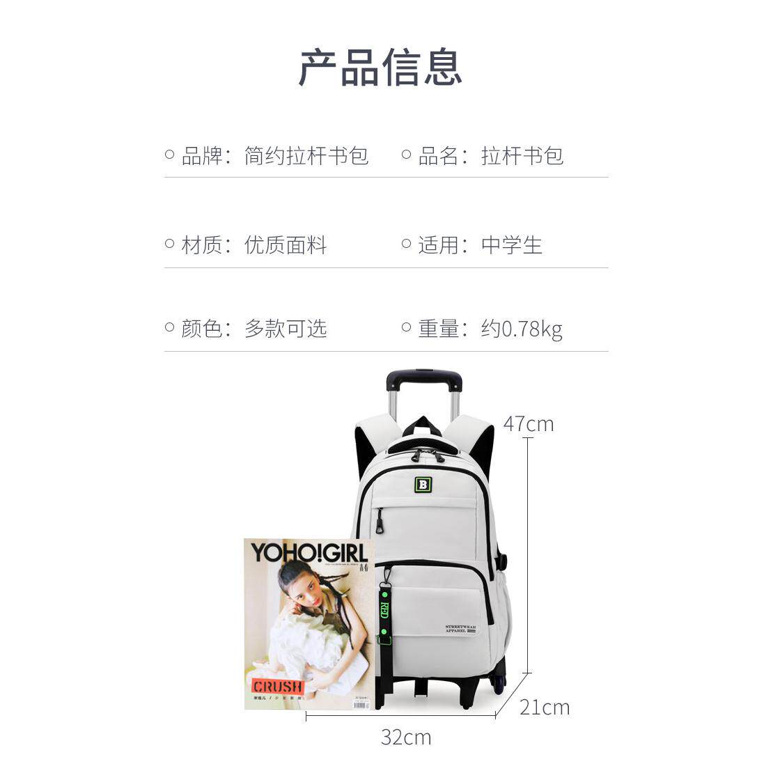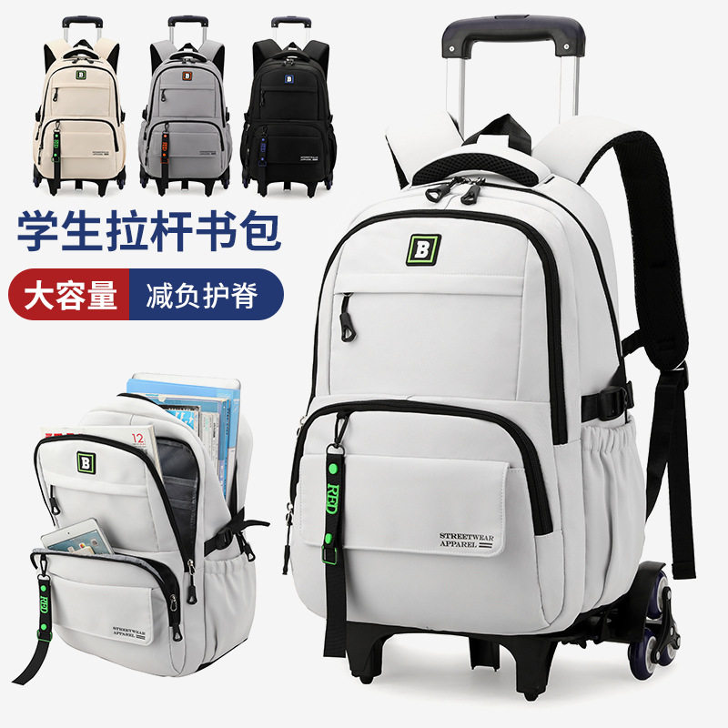 大容量可爬楼拉杆书包小学生初中生高中生男耐用可拆卸书包