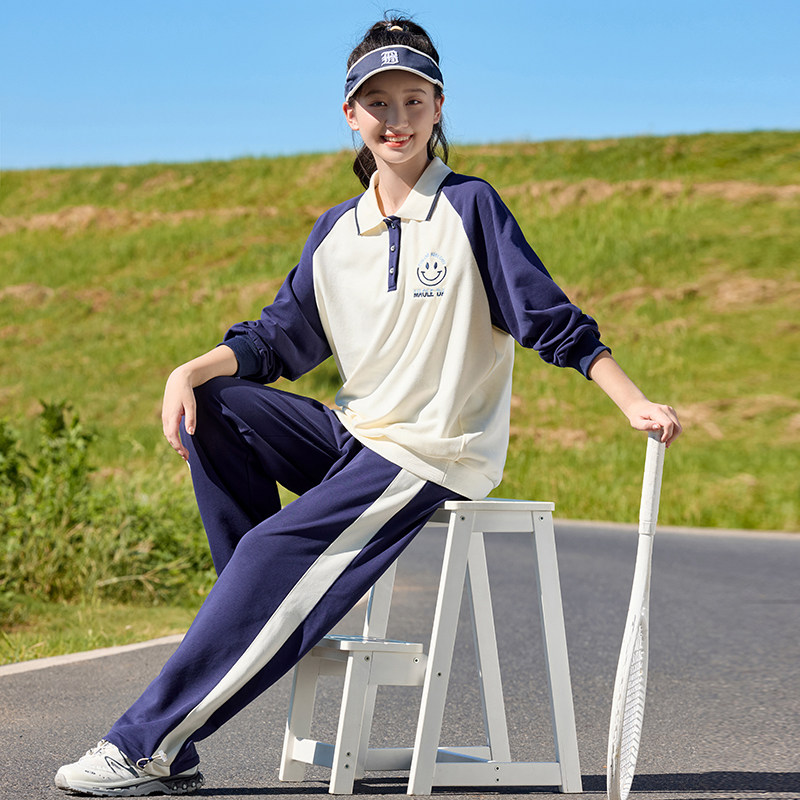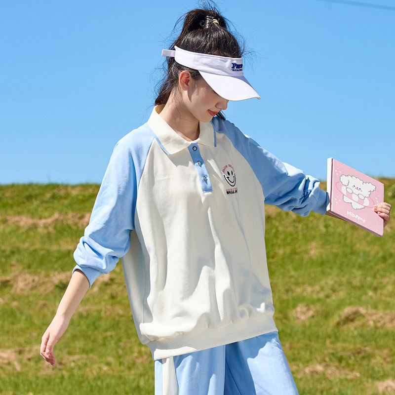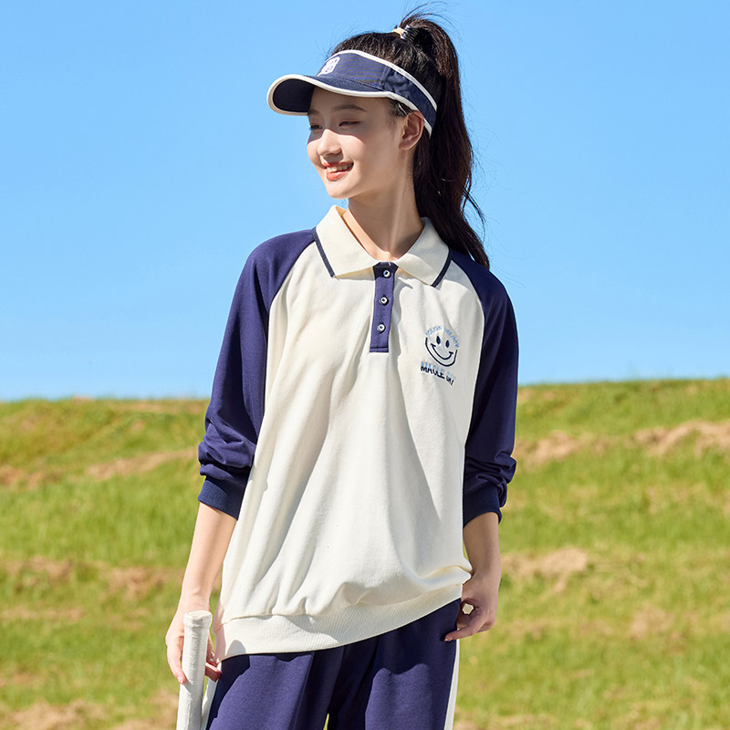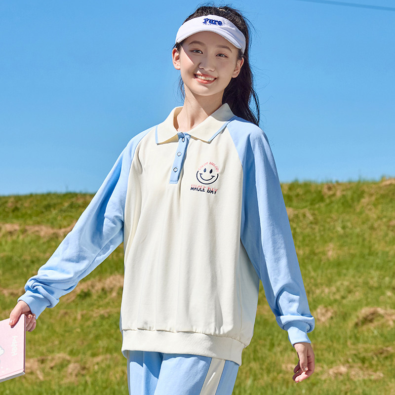 女大童卫衣春装套装新款Polo翻领洋气女孩初中学生女童长袖两件套