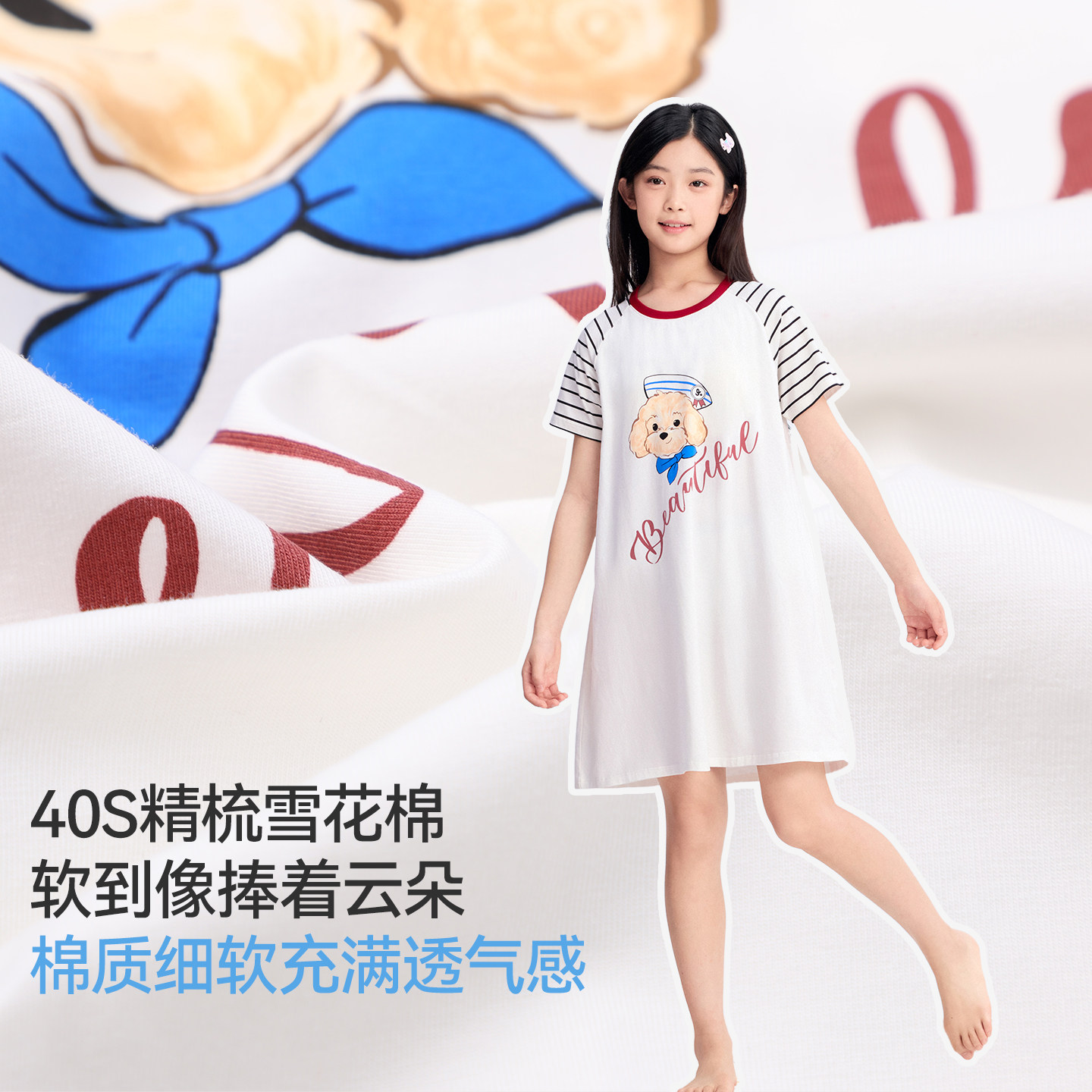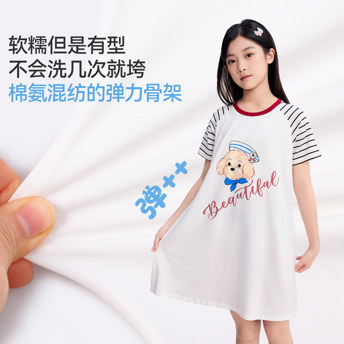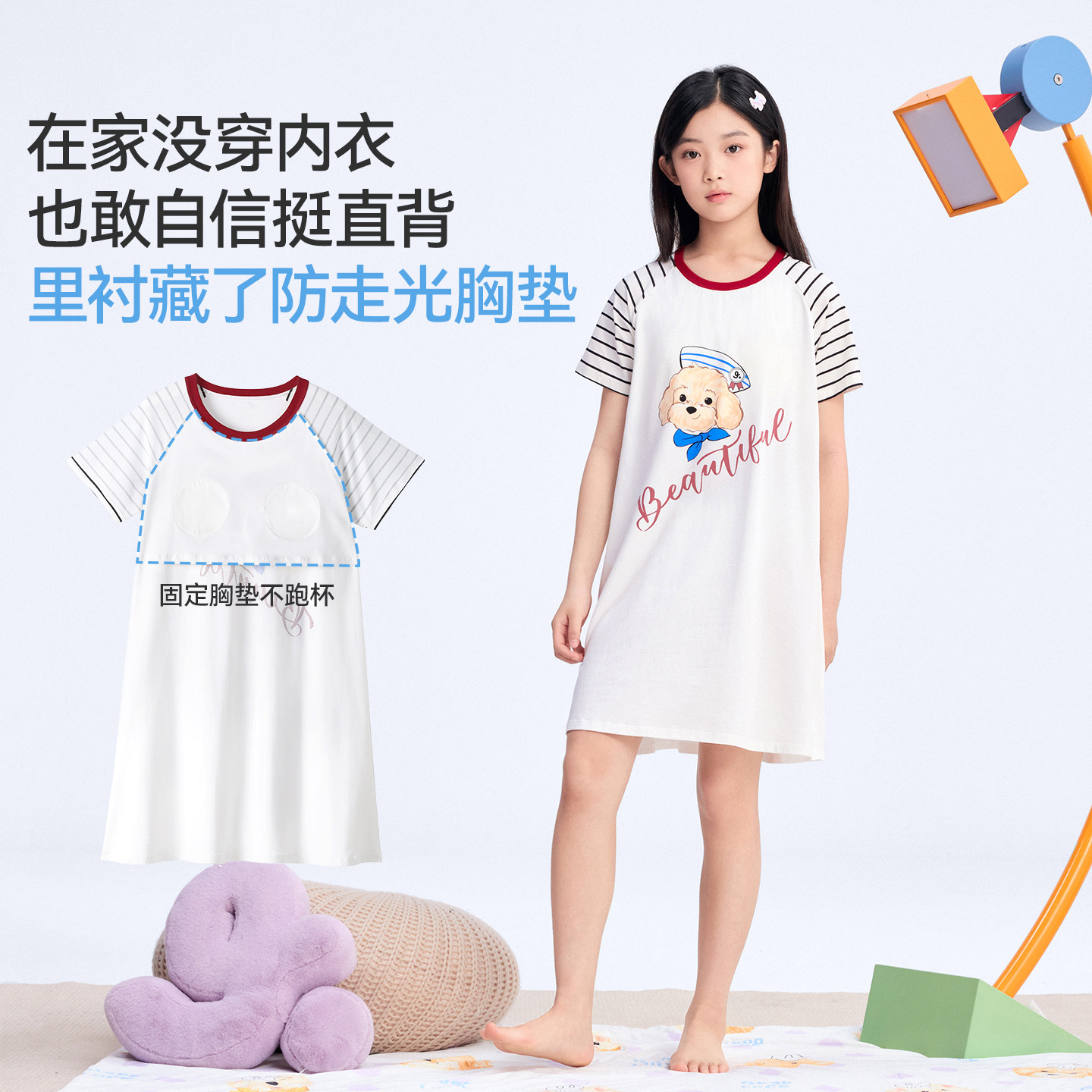久岁伴儿童睡裙少女童春夏薄款带胸垫短袖大童高升中居家连衣裙