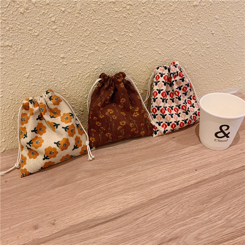 小白兔几 灯芯绒收纳袋抽绳束口小布袋化妆品首饰文具防尘整理袋