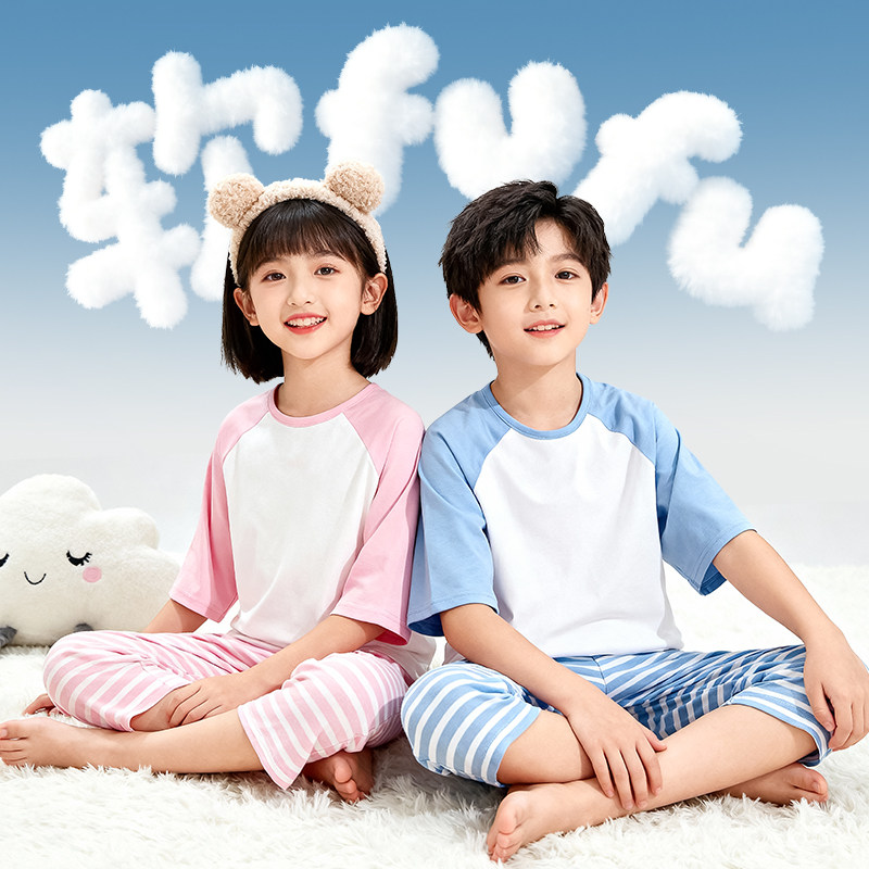 红豆儿童睡衣男孩纯棉透气家居服套装夏季薄款短袖男童女童空调服