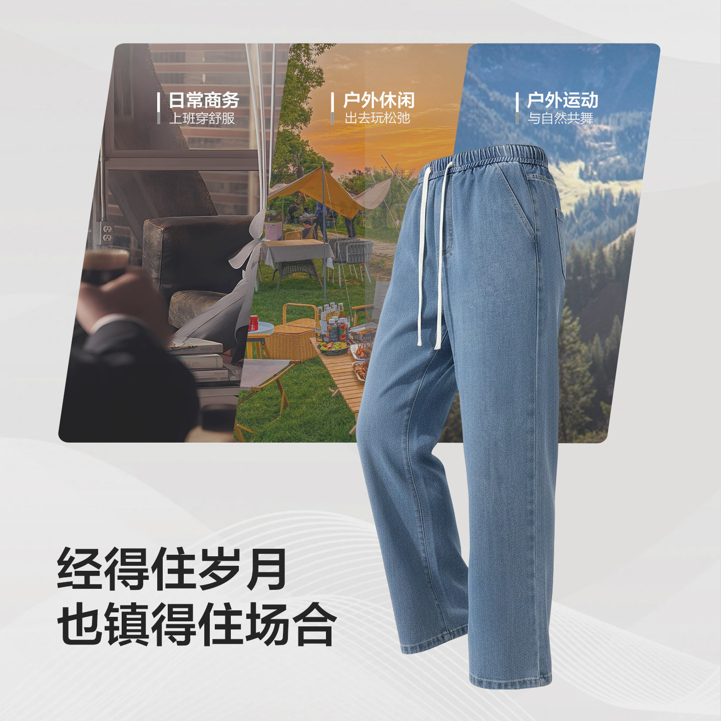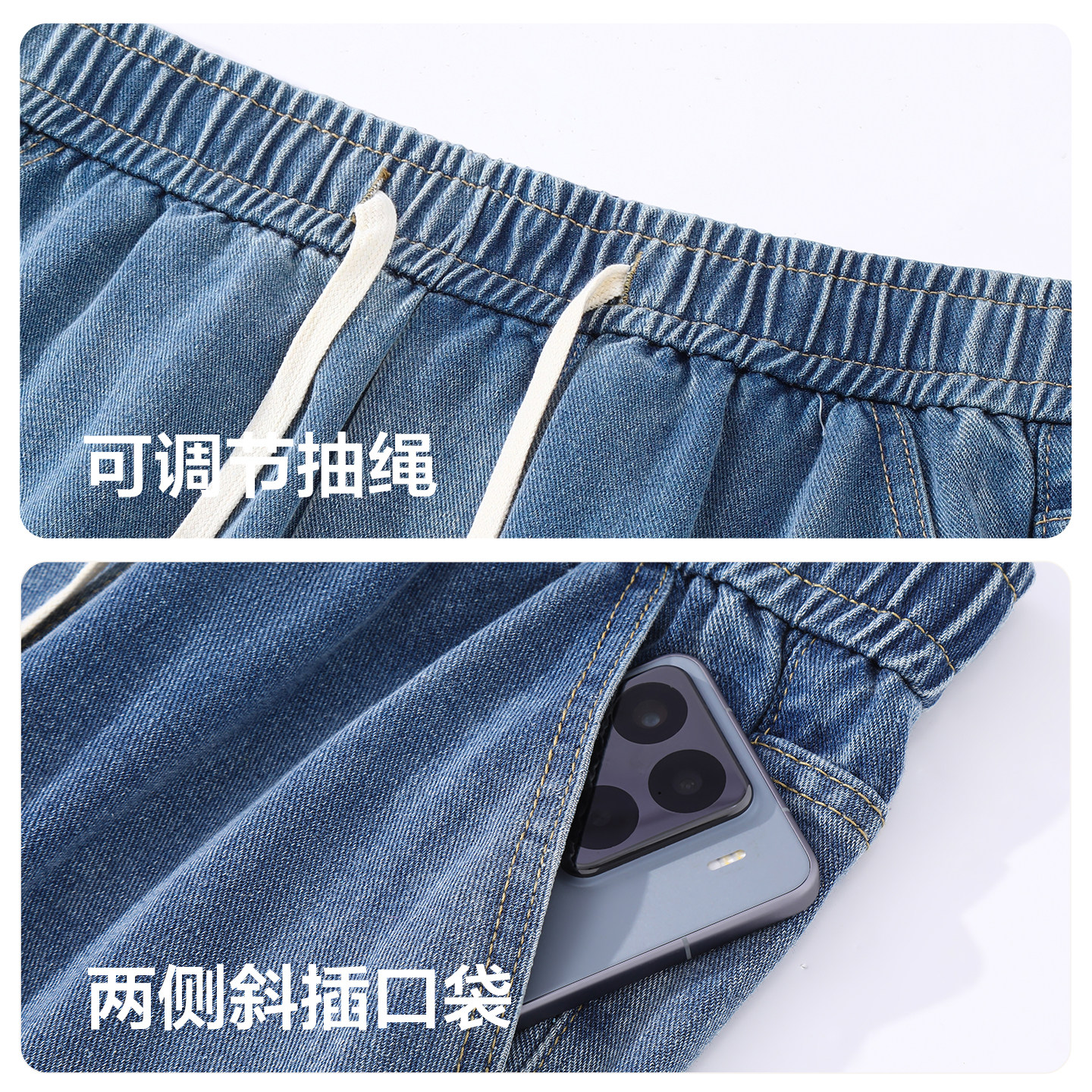 红豆牛仔裤男款2026春季新款直筒宽松休闲裤男士松紧腰抽绳长裤pc