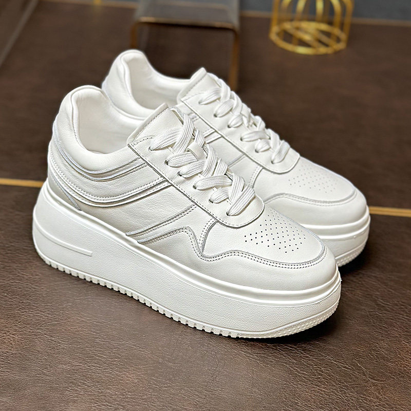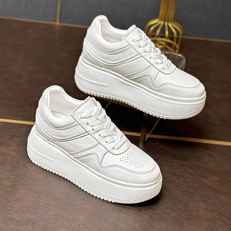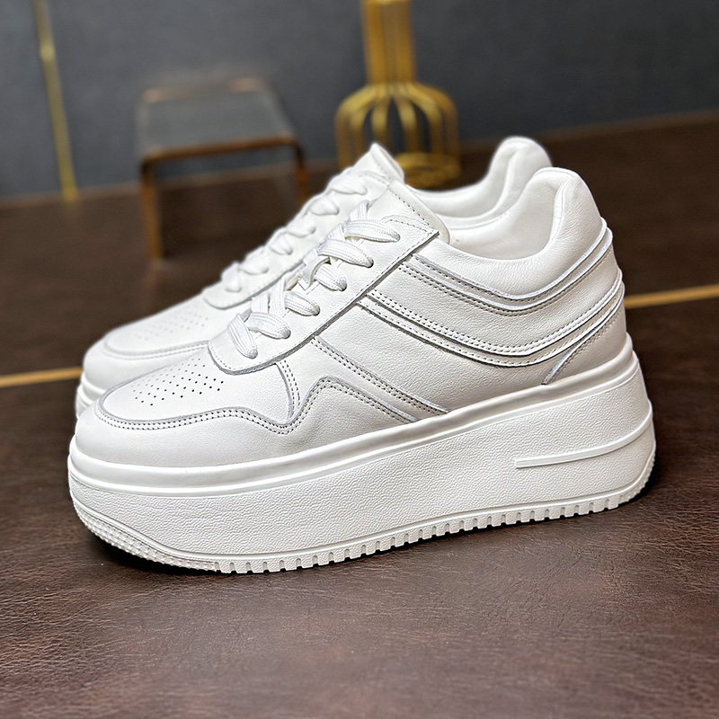 超轻便7-9cm内增高2026春夏新款女款爆款百搭真皮厚底松糕小白鞋