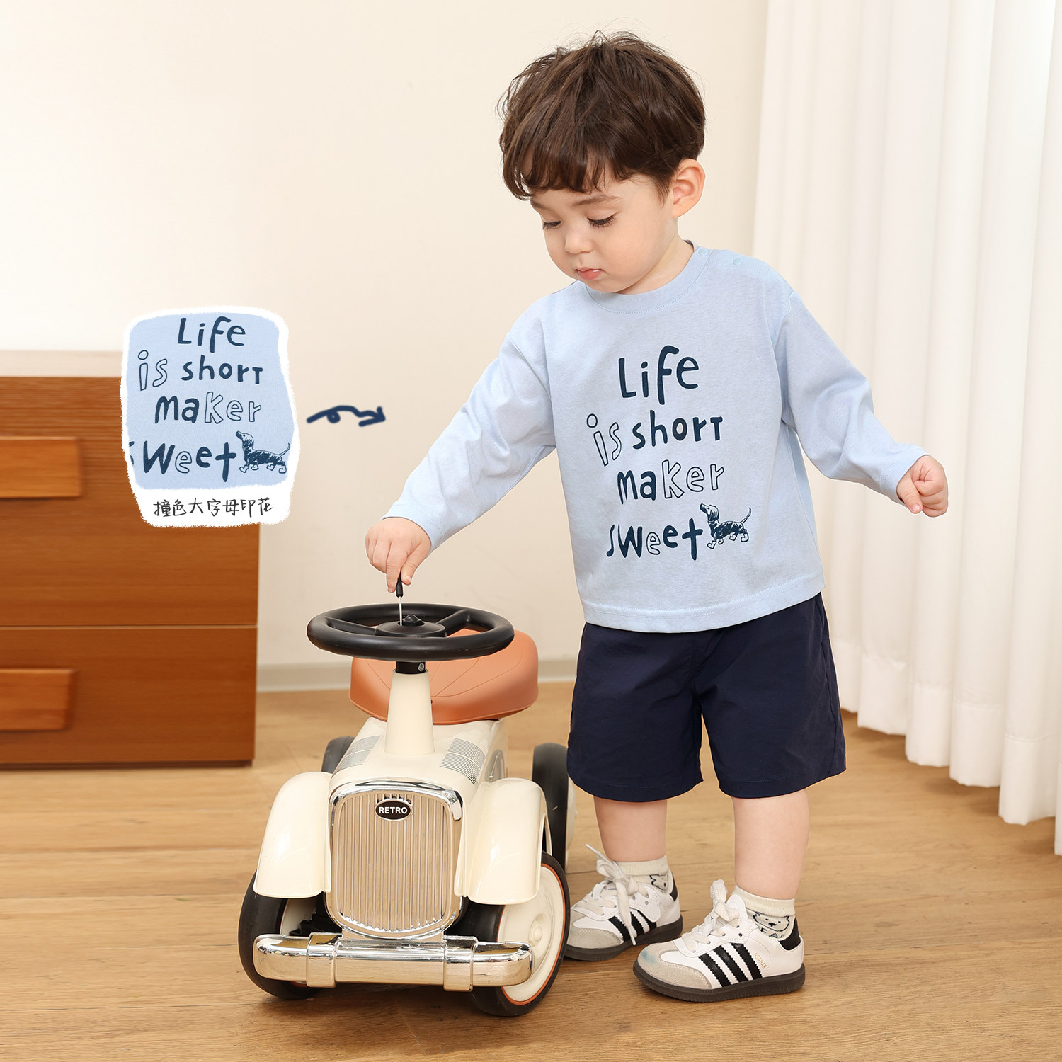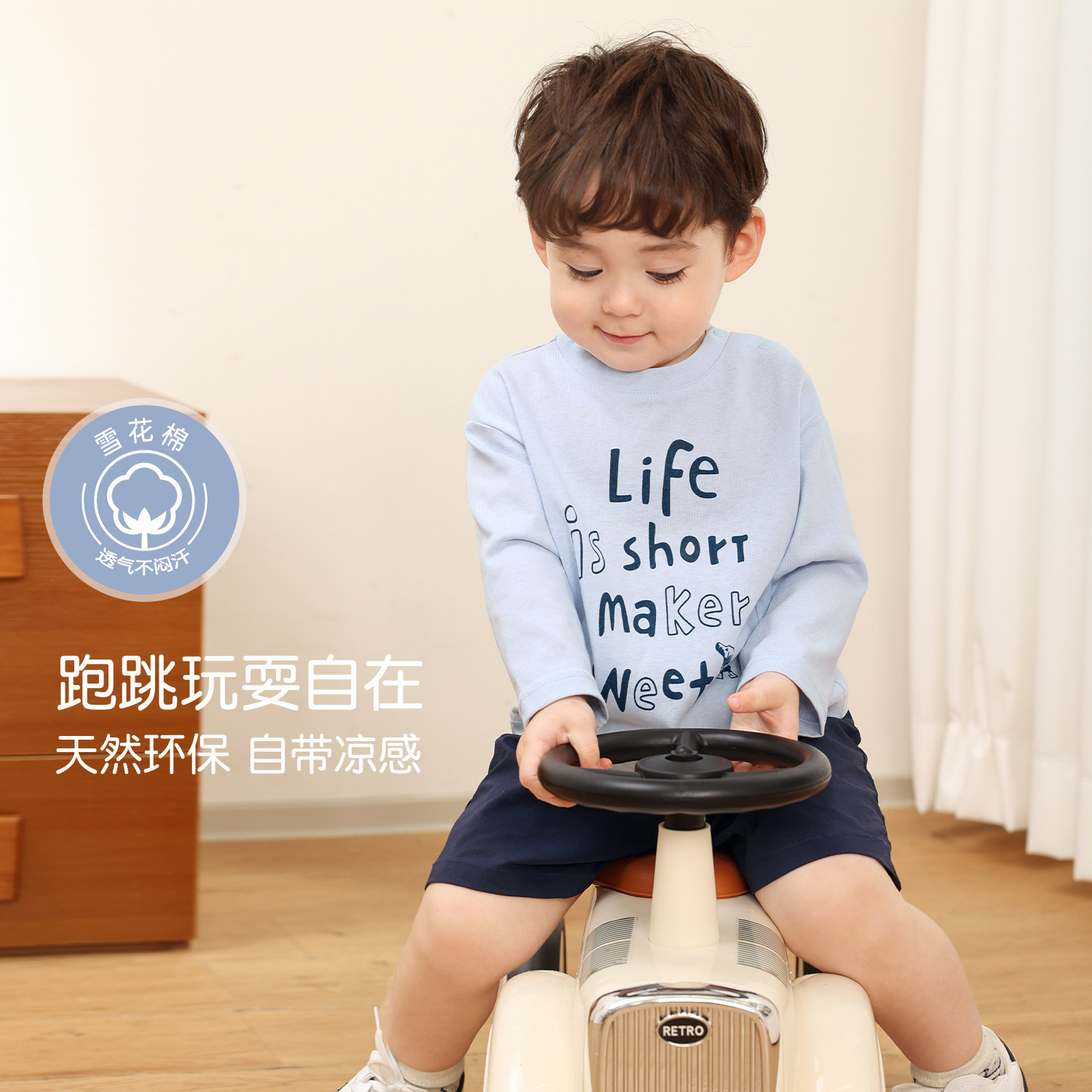 小O爸男婴童 宝宝长袖t恤亲子2026新款婴儿薄款雪花棉防晒罩衫