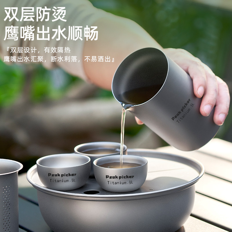 便携式纯钛高级旅行茶具套装泡茶器新款户外露营钛合金快客杯茶壶