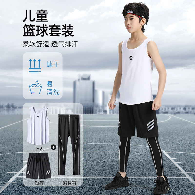 儿童篮球服运动背心套装训练服跑步速干男童足球底裤夏季短裤