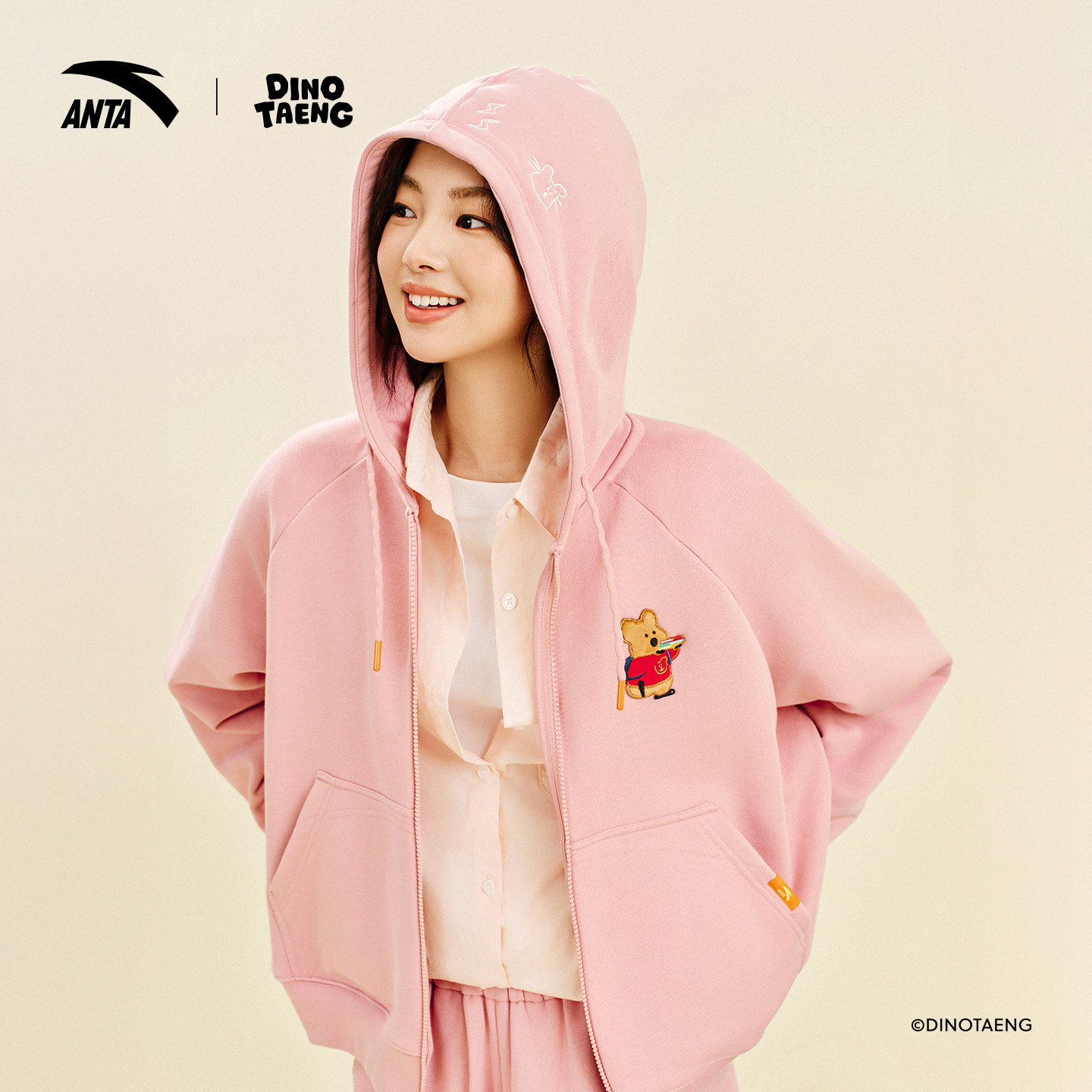 安踏×呆萌町联名外套女2026新款宽松刺绣连帽开衫卫衣162548730