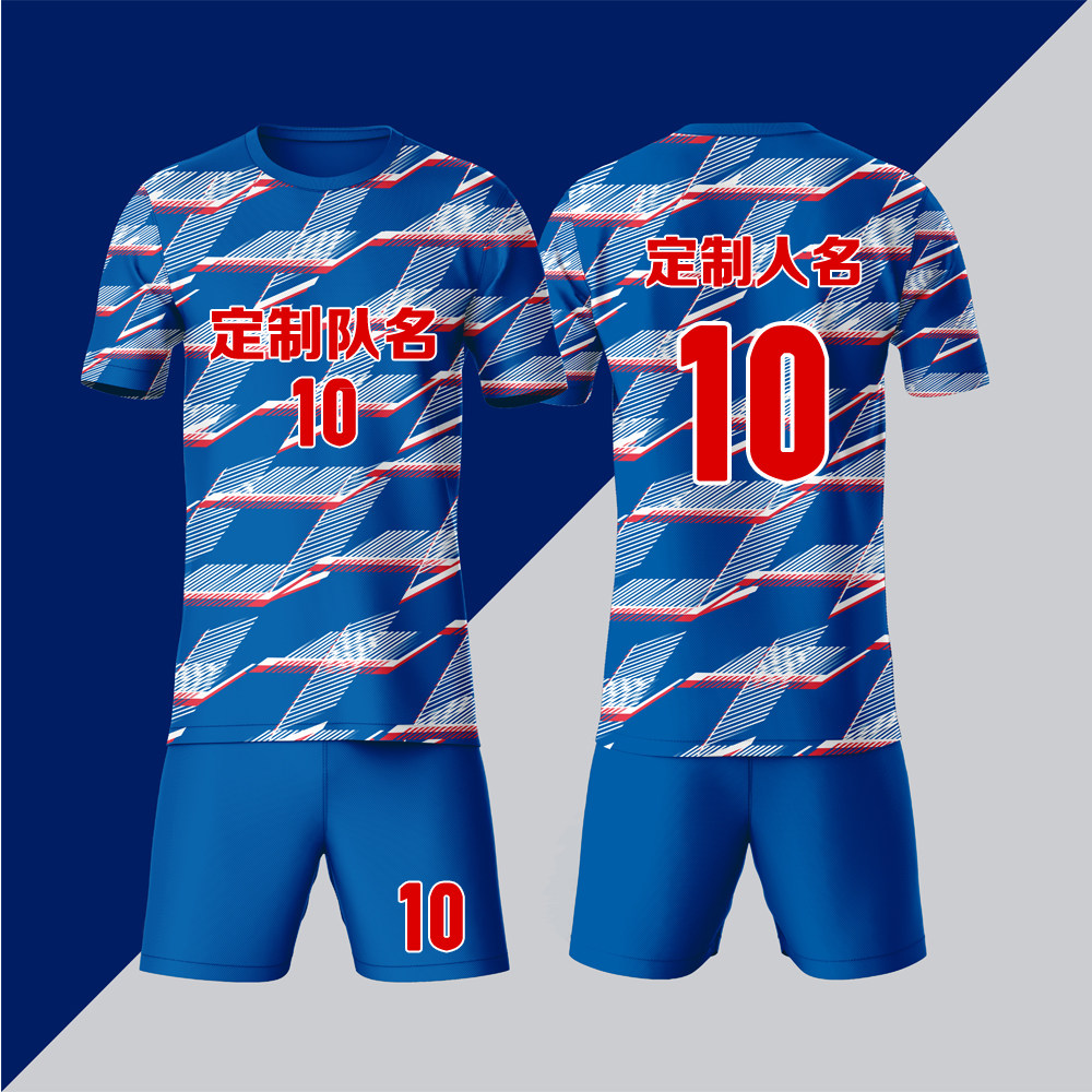 全身数码定制印刷成人儿童足球服套装球衣比赛训练队服LBZ038蓝色
