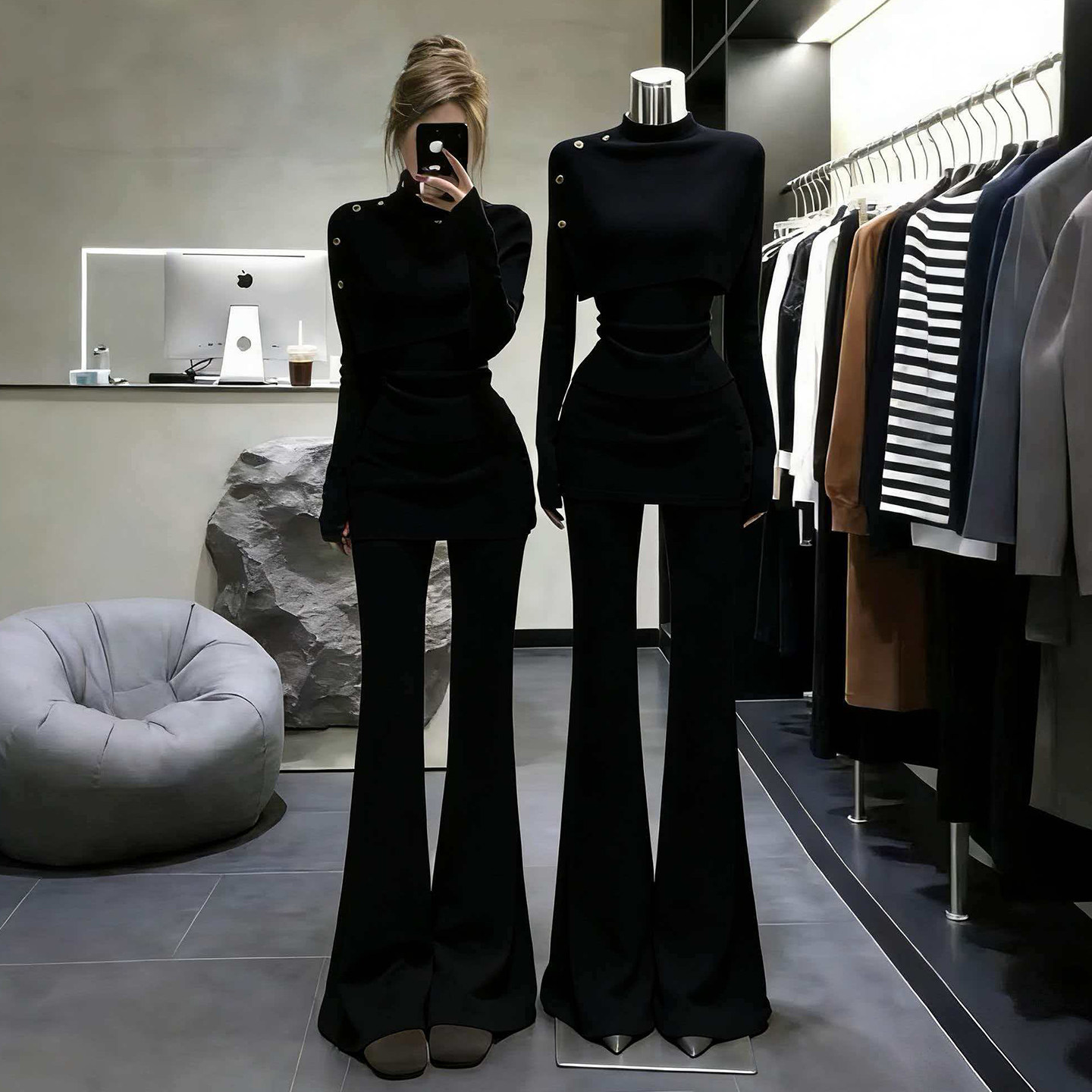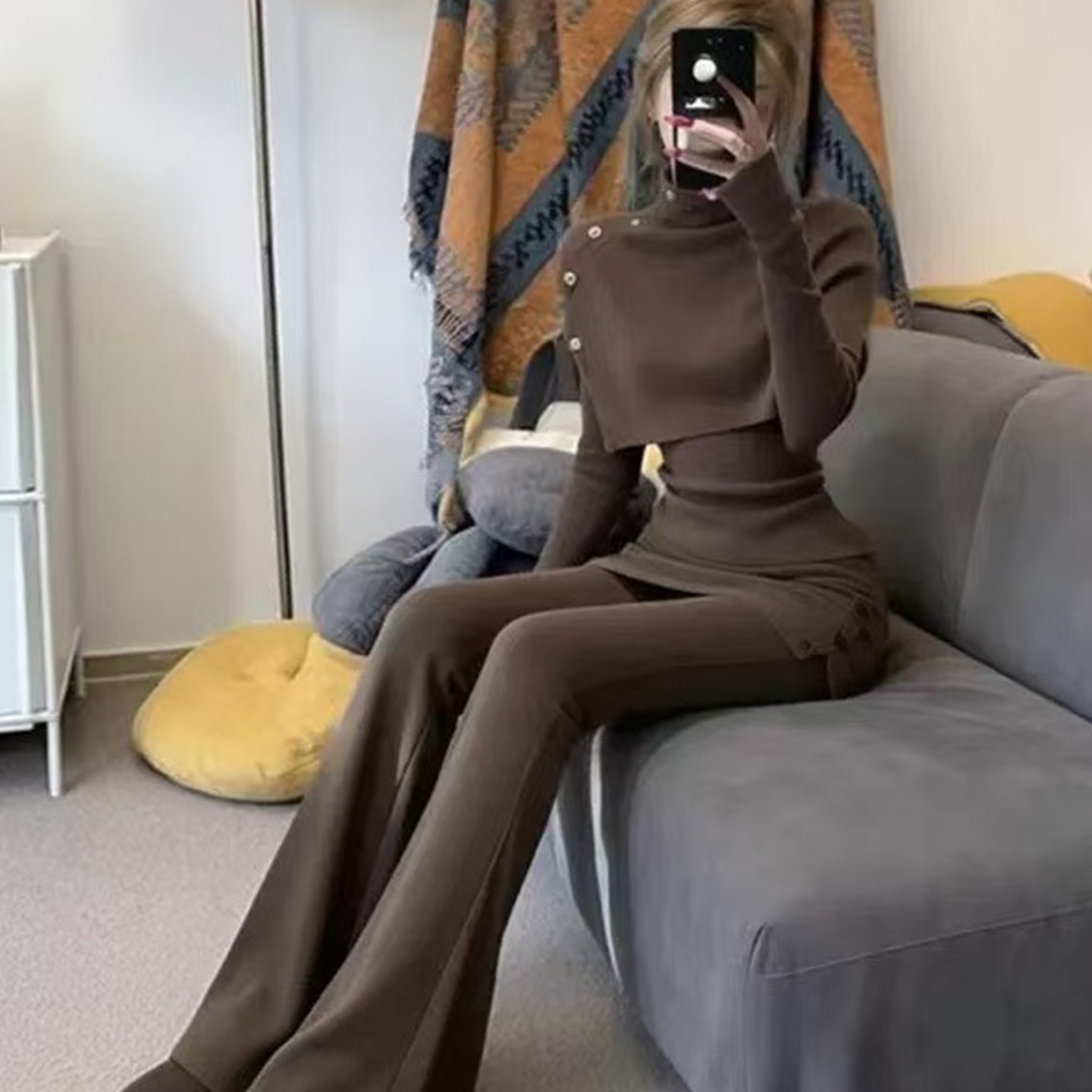 2026新款美拉德复古咖色套装女早春斗篷针织衫屁帘阔腿裤子两件套