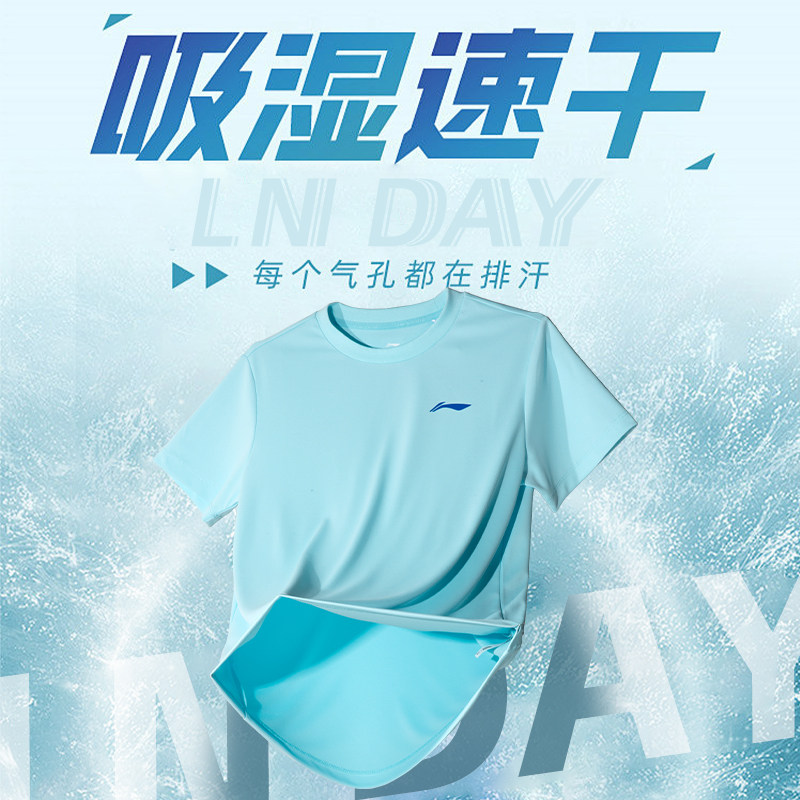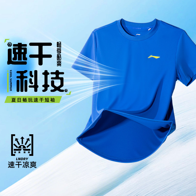 李宁官方正品旗舰短袖T恤男童大童女童夏季舒适速干透气运动上衣