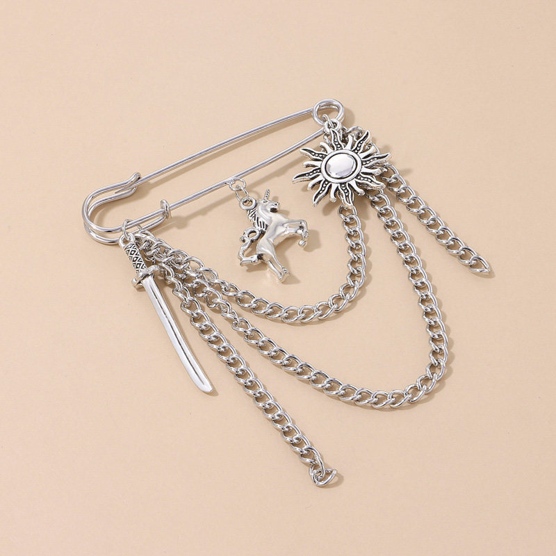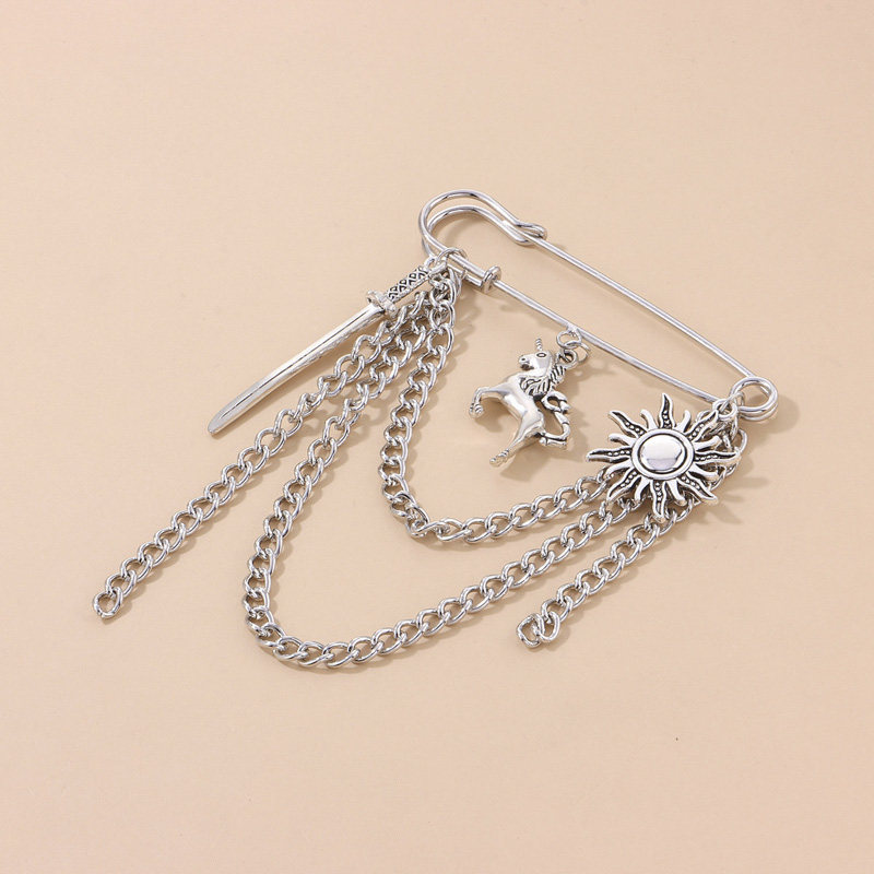 Nrons潮酷多元素独角兽飞马胸针太阳神武士刀男女百搭时尚别针挂