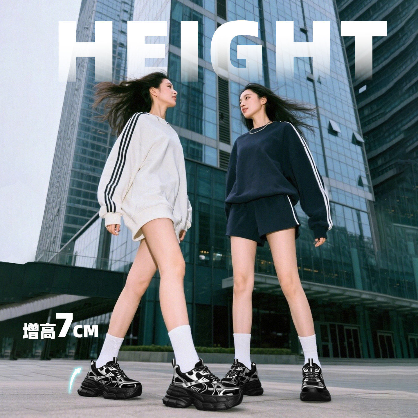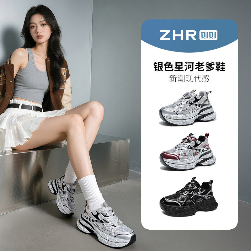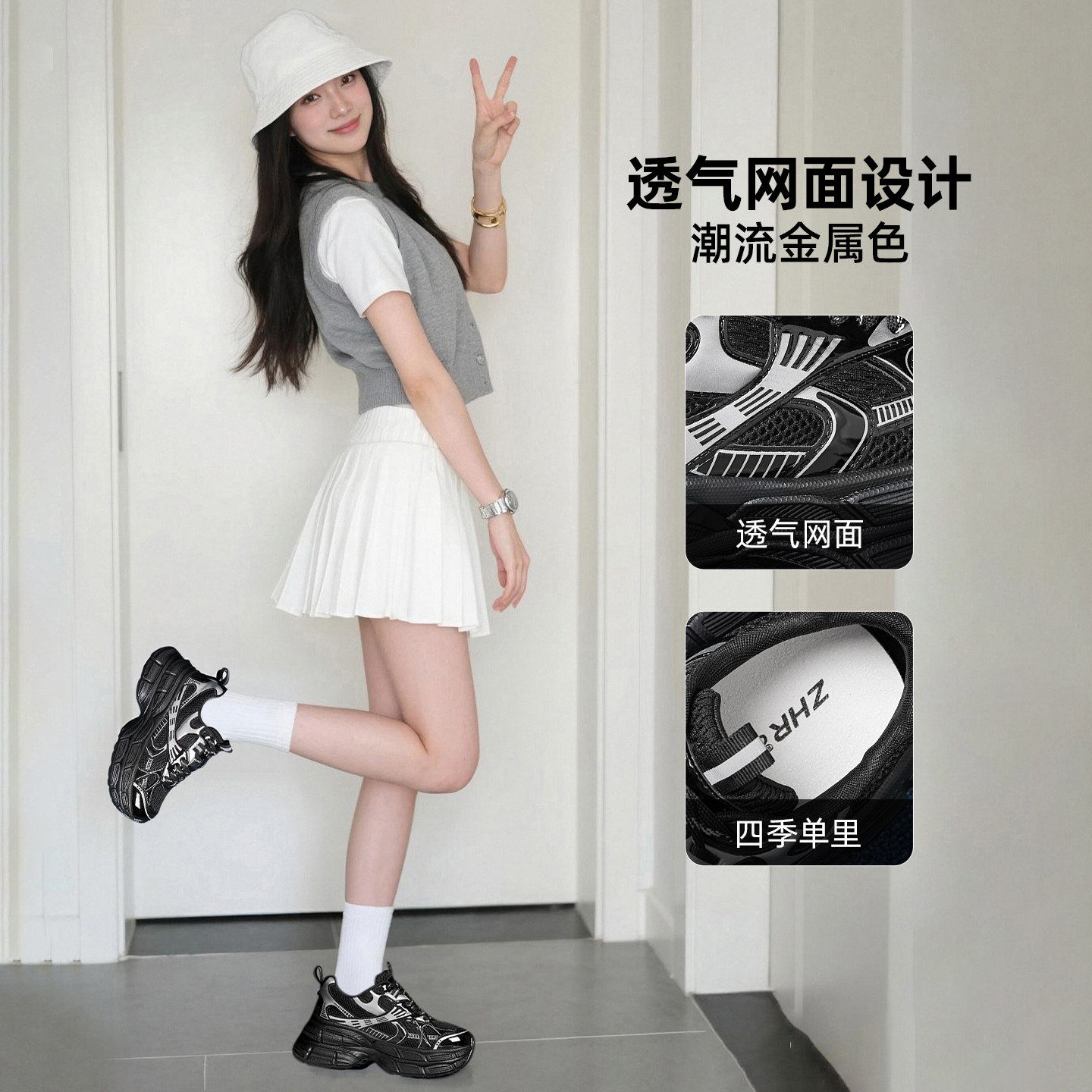老爹鞋女款2026春季新款厚底增高女鞋子透气轻便显脚小黑色运动鞋