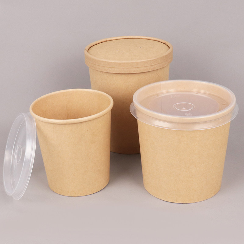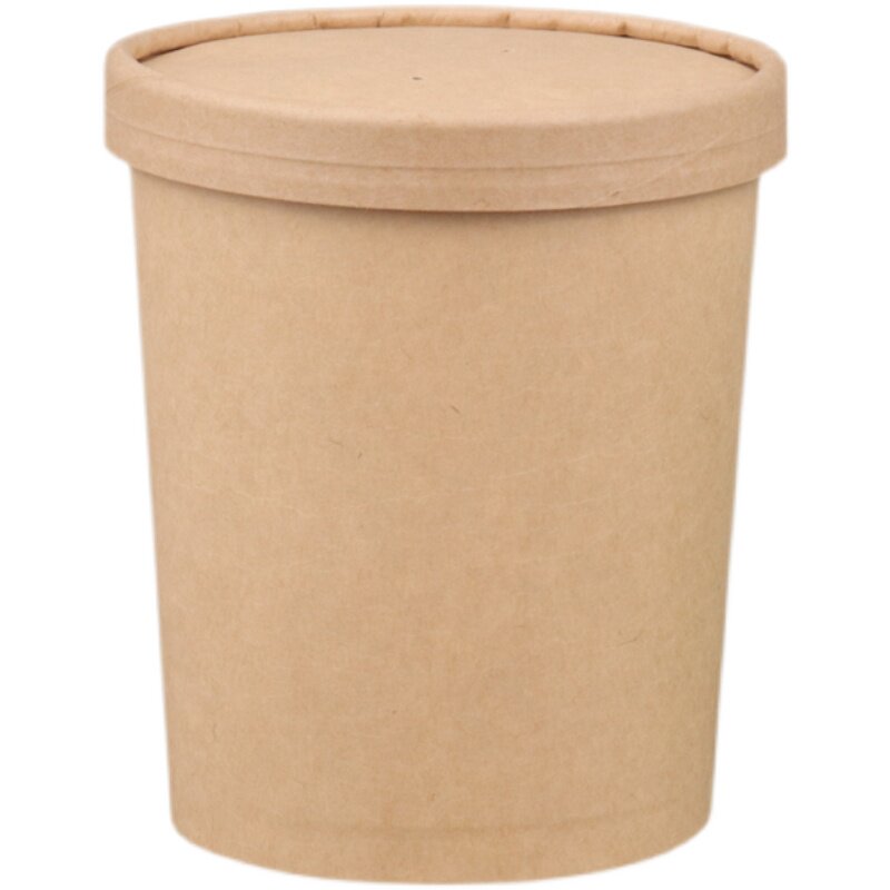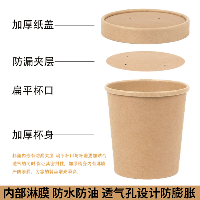 一次性纸碗圆形打包盒牛皮纸汤碗粥外卖汤桶带盖甜品碗快餐盒汤杯